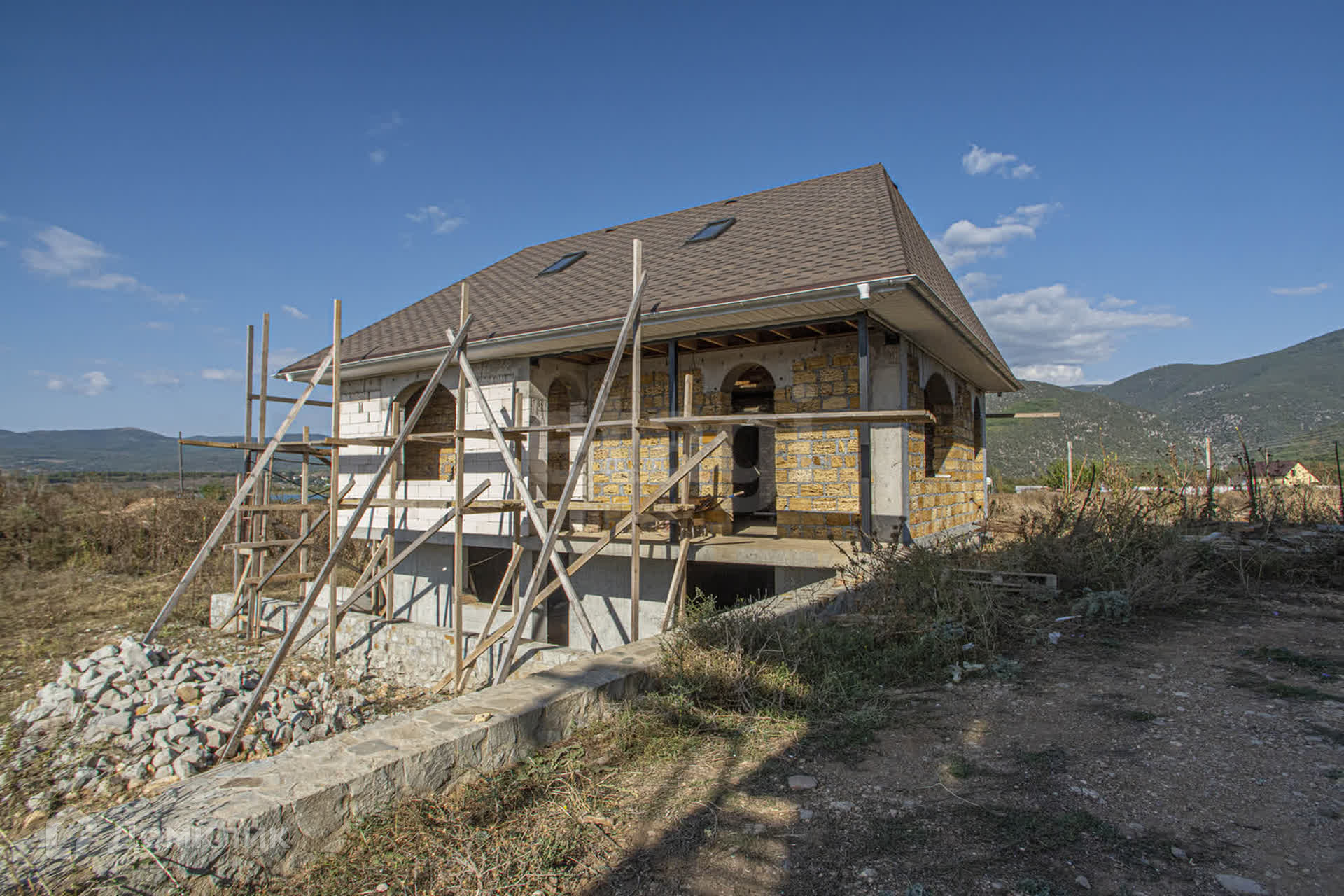 Дом построен в 2023 году, из ракушника, главный плюс которого это экологичность, добываемый из морских донных отложений, он не содержит химических веществ и примесей тяжелых металлов, с отличной шумо- и теплоизоляцией, толщина стен 50 см. Дом построен с соблюдением всех строительных норм и норм сейсмозоны, с межкомнатными стенами из красного кирпича. Дом без внутренней отделки, что позволит Вам сделать все на свой вкус. Строился для большой семьи в несколько поколений, соответственно, предлагается для комфортного проживания семей с традициями и создает все условия для гостеприимства, здесь очень удобно принимать гостей. 1-й этаж: зал, кухни, два санузла, две спальни, гардеробная, просторная веранда. 2-й этаж: несколько спален, с собственными санузлами, есть выходы на две открытых террасы. Мансардный этаж: две спальни с санузлами, выход на видовую террасу. Идеально может подойти и под коммерцию: можно сдавать для отдыхающих шесть автономных номеров, с доходностью от десяти миллионов в год. На участке есть бассейн и SPA комплекс с хамамом и баней.