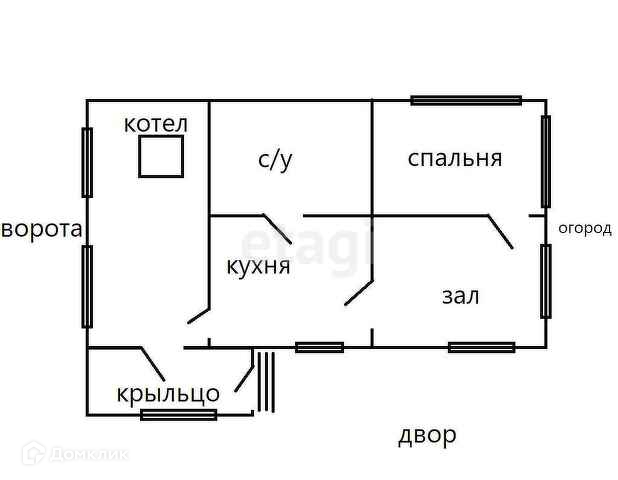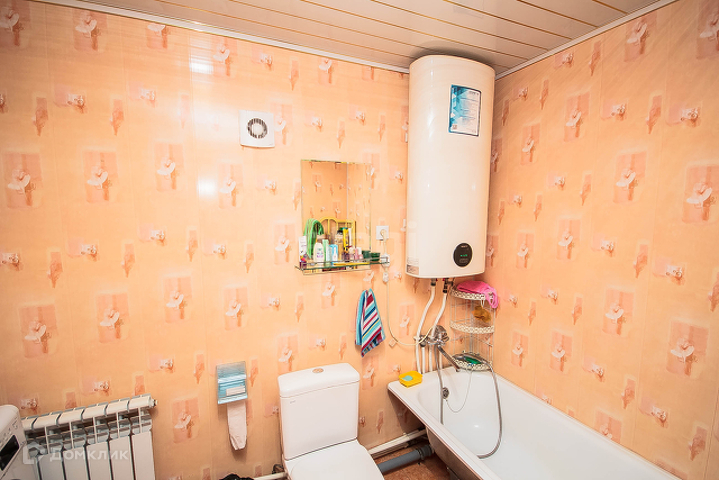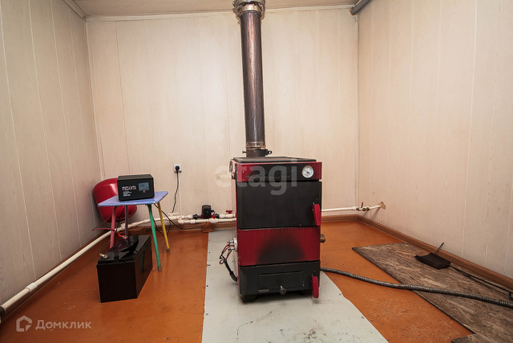 - на входе просторная прихожая в которой установлен котел отопления (работает от угля, дров и электричества), горячая вода расходится по всему дому по трубам в батареи;