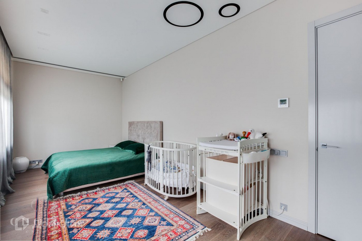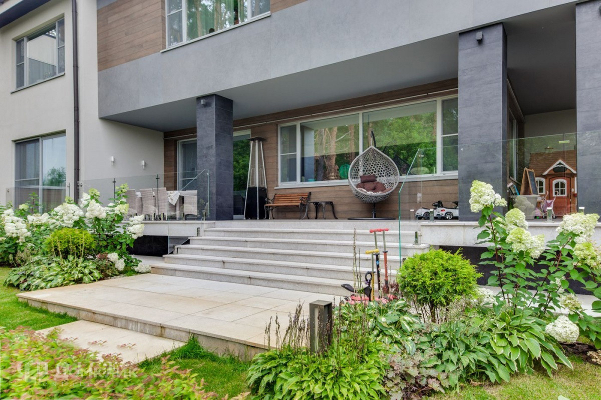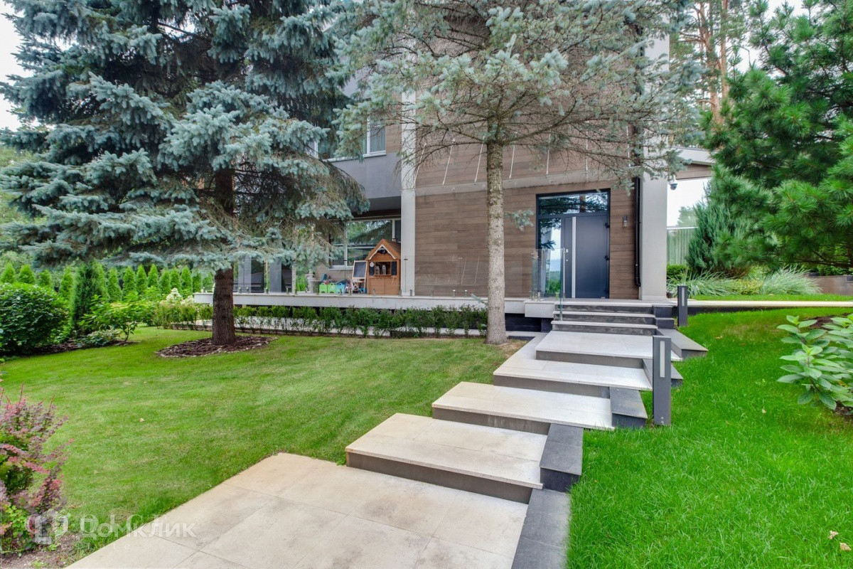 Загородная резиденция в современном стиле общей площадью 750 м2 построена на лесном участке площадью 15 соток расположенном на холме в коттеджном посёлке "Ромашково". В доме спланировали 5 спален со своими санузлами, гостиную со вторым светом, квартиру для персонала, гараж на 2 автомобиля, а также СПА-зону с бассейном, сауной и хаммам. На участке выполнен ландшафтный дизайн, растут многолетние деревья, установлено уличное освещение.