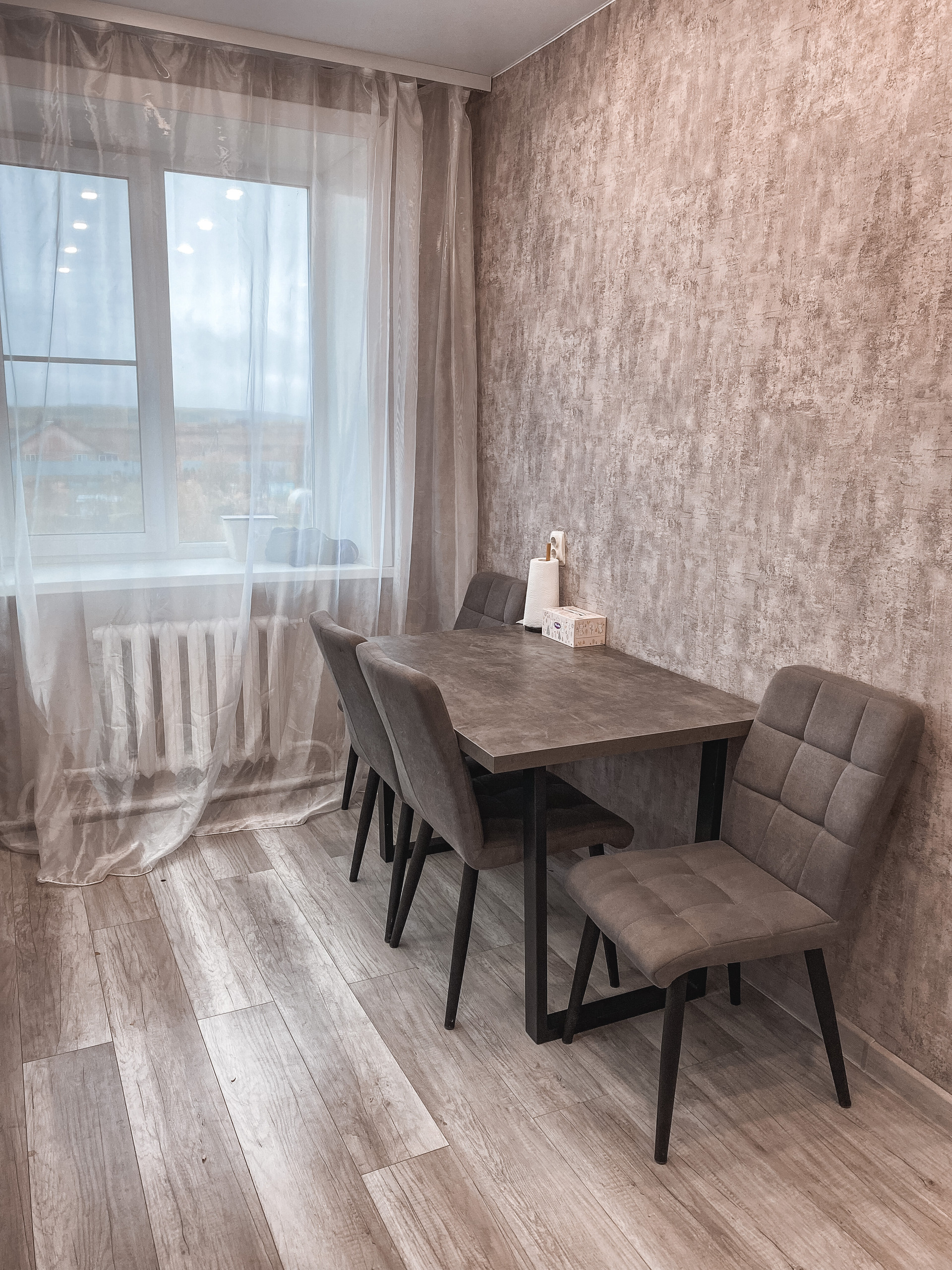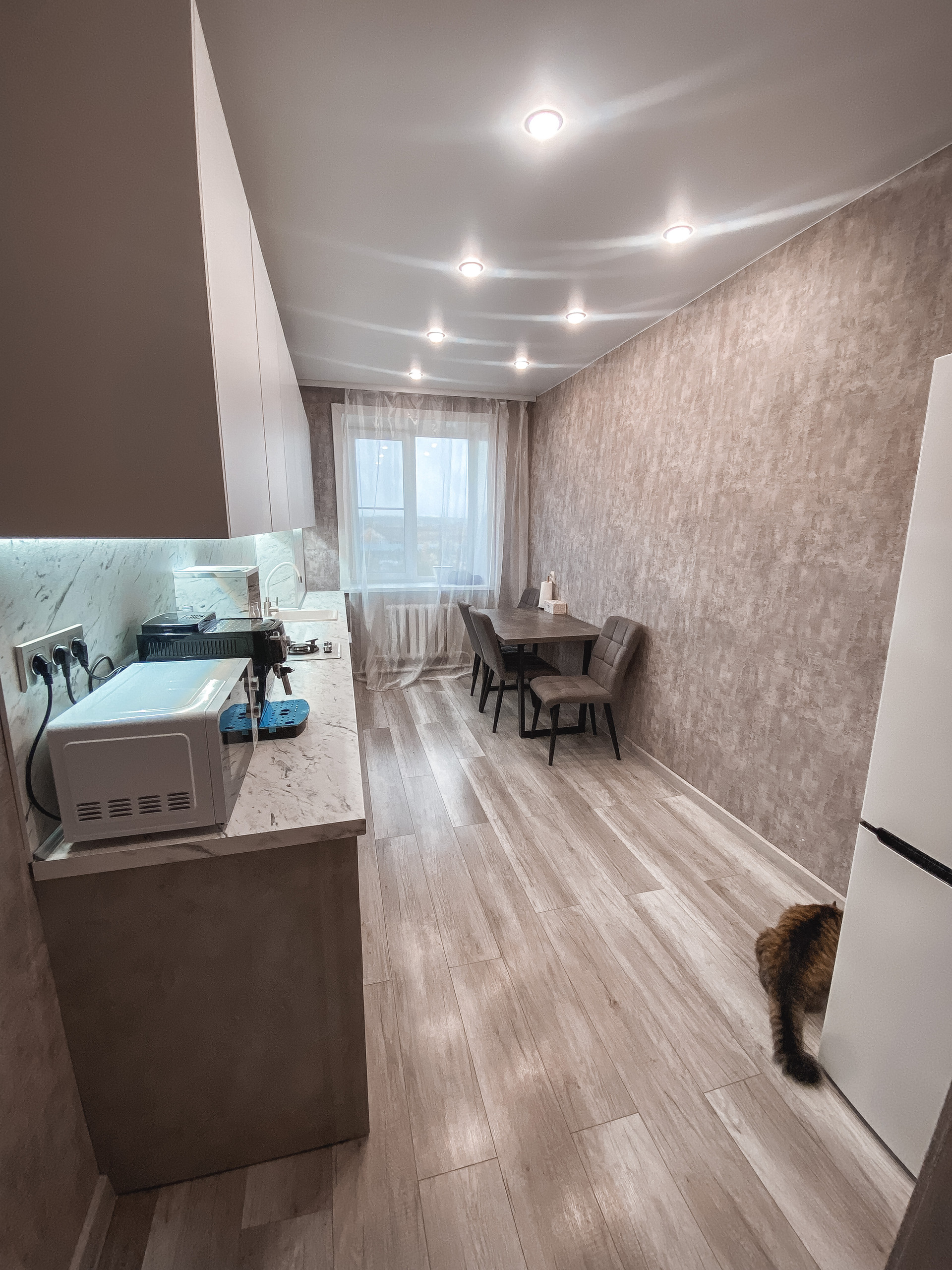Остается новый кухонный гарнитур. И вся техника на кухне.В том числе холодильник и посудомоечная машина.