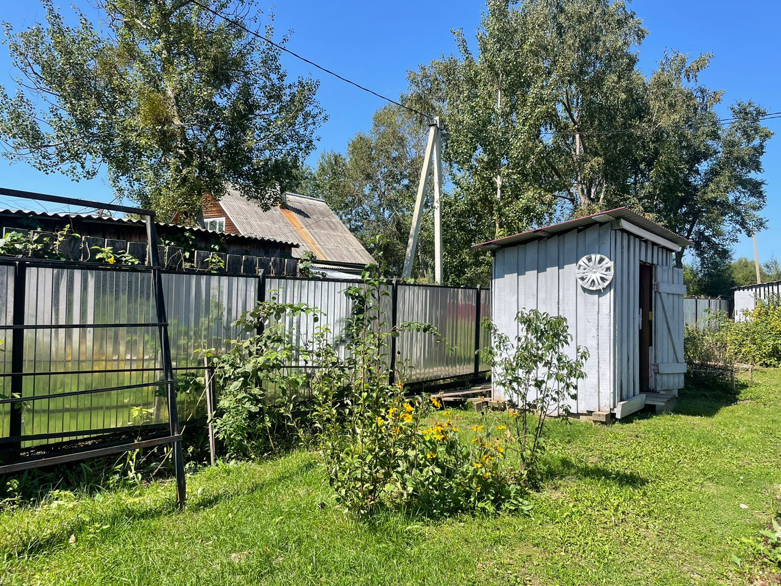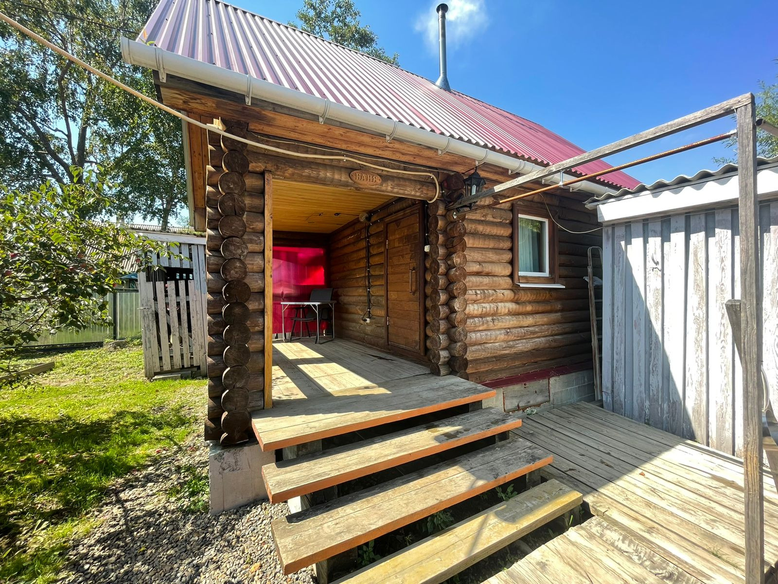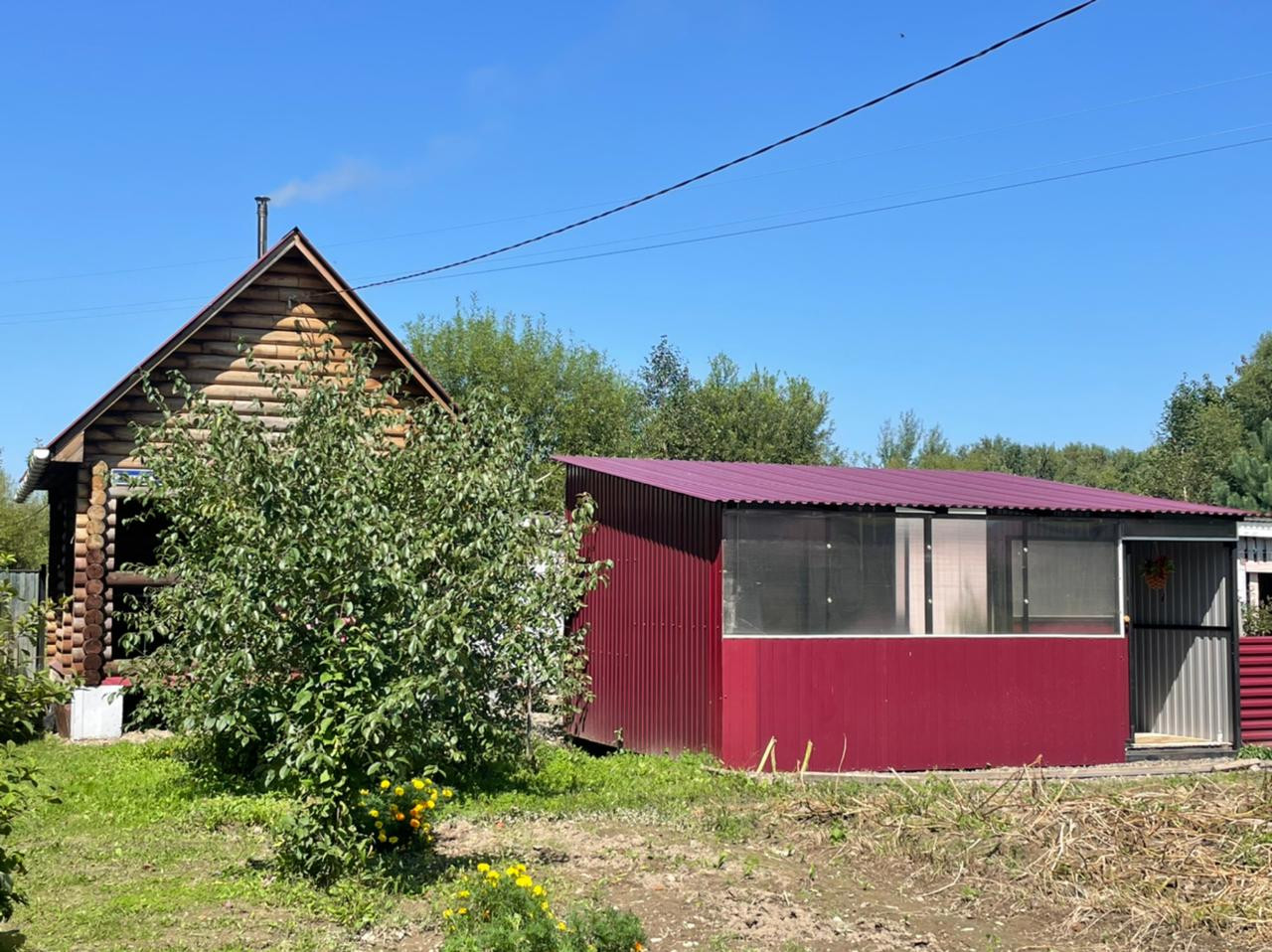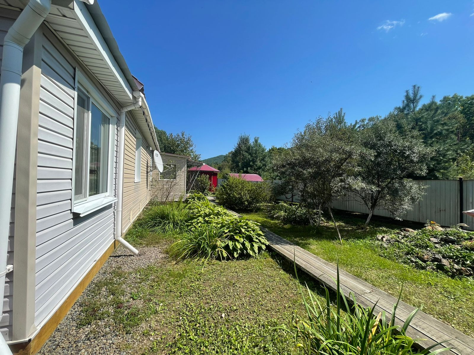 На территории имеются гараж, дровенник, летняя зона, беседка, мангальная зона, кладовая, летний душ, баня из круглого бруса с террасой. Территория по всему периметру огорожена металлическим забором на железном каркасе, ухоженный огород, сад с плодовыми деревьями и кустарниками.