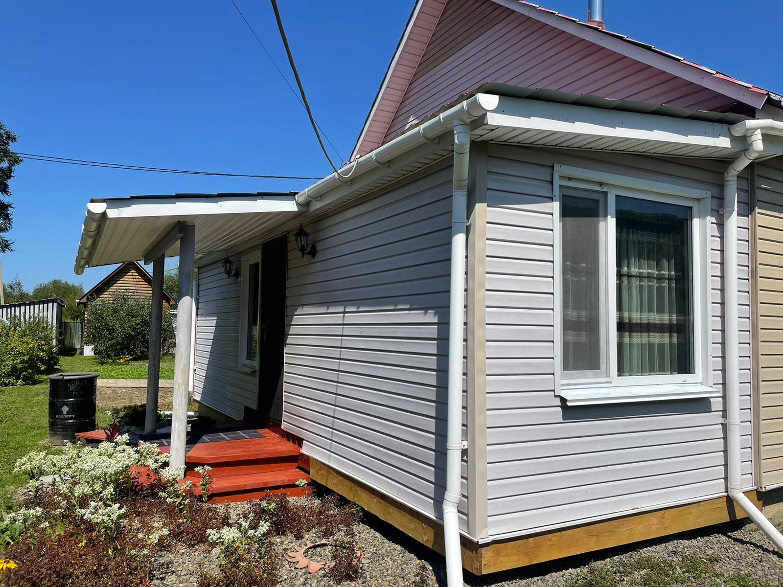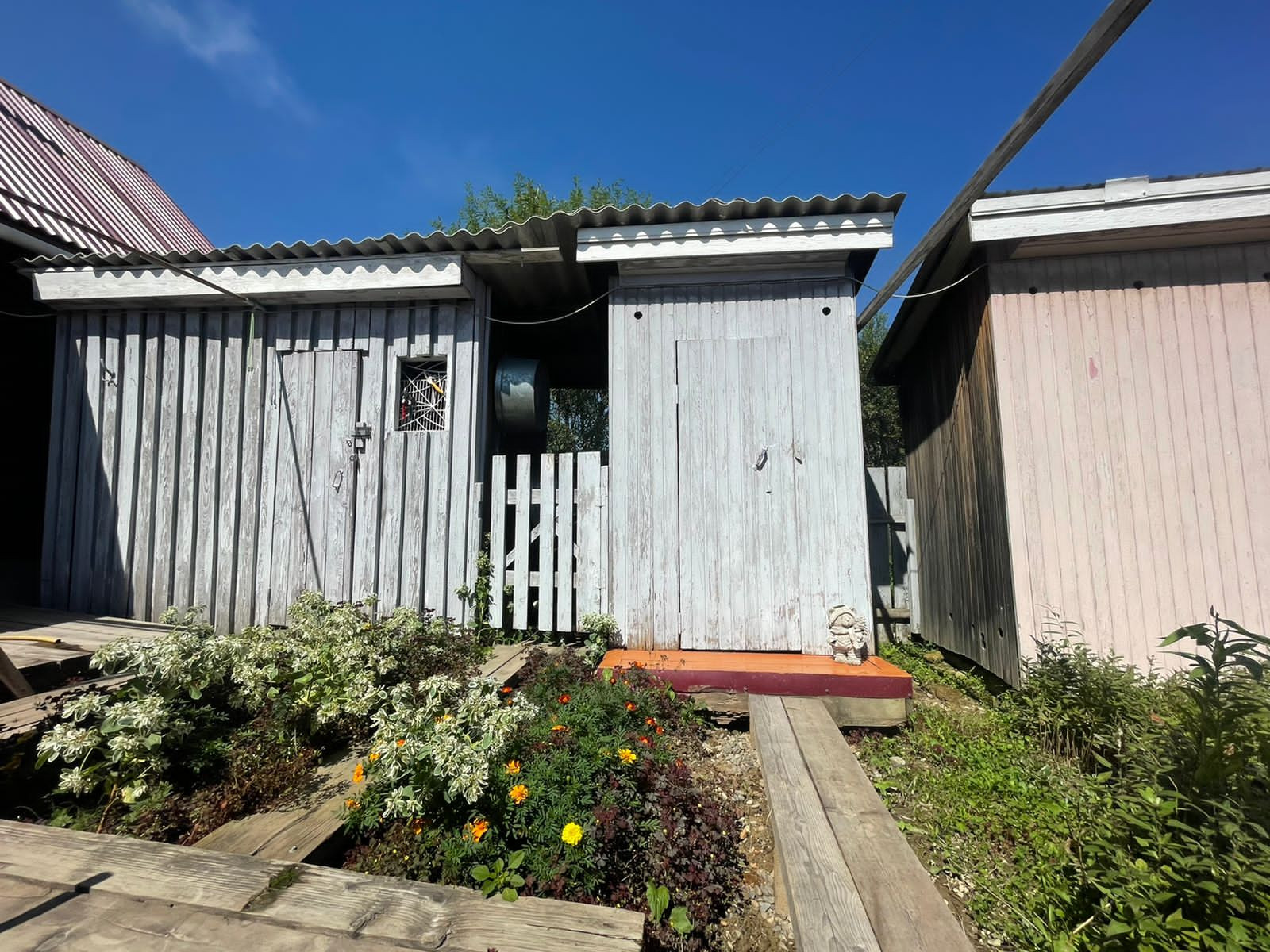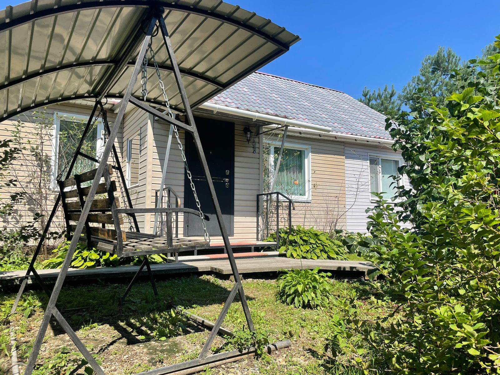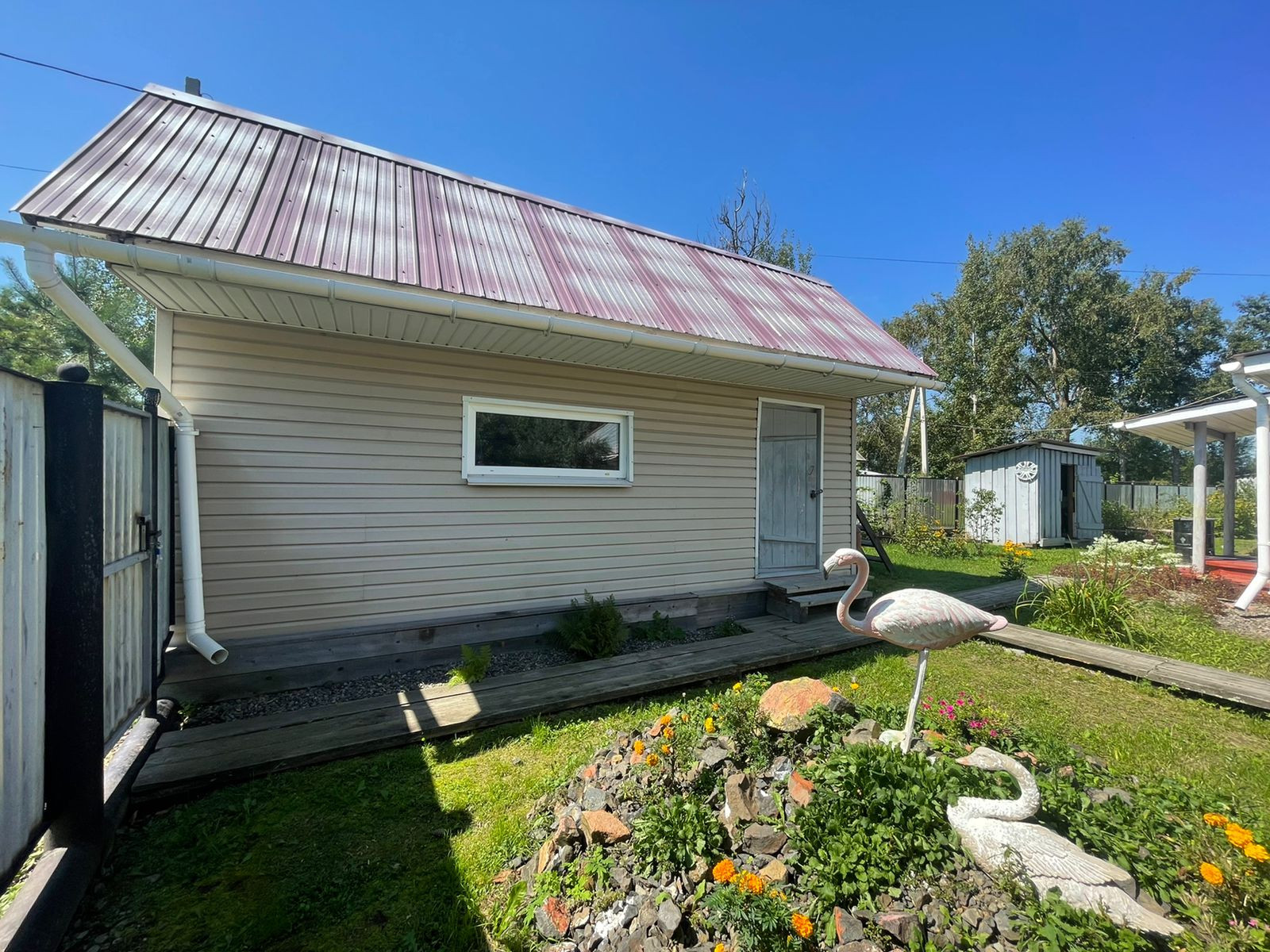 На территории имеются гараж, дровенник, летняя зона, беседка, мангальная зона, кладовая, летний душ, баня из круглого бруса с террасой. Территория по всему периметру огорожена металлическим забором на железном каркасе, ухоженный огород, сад с плодовыми деревьями и кустарниками.
