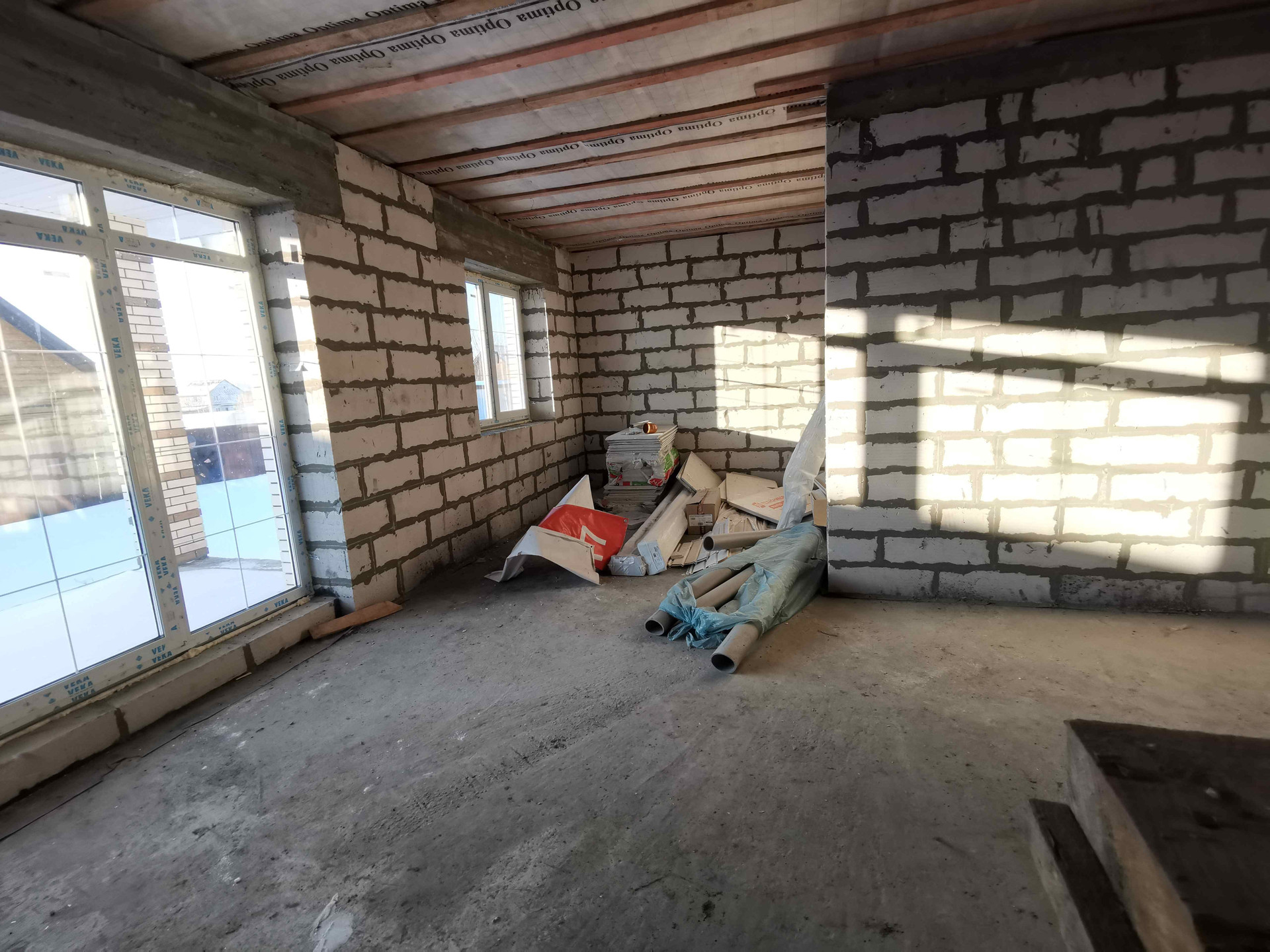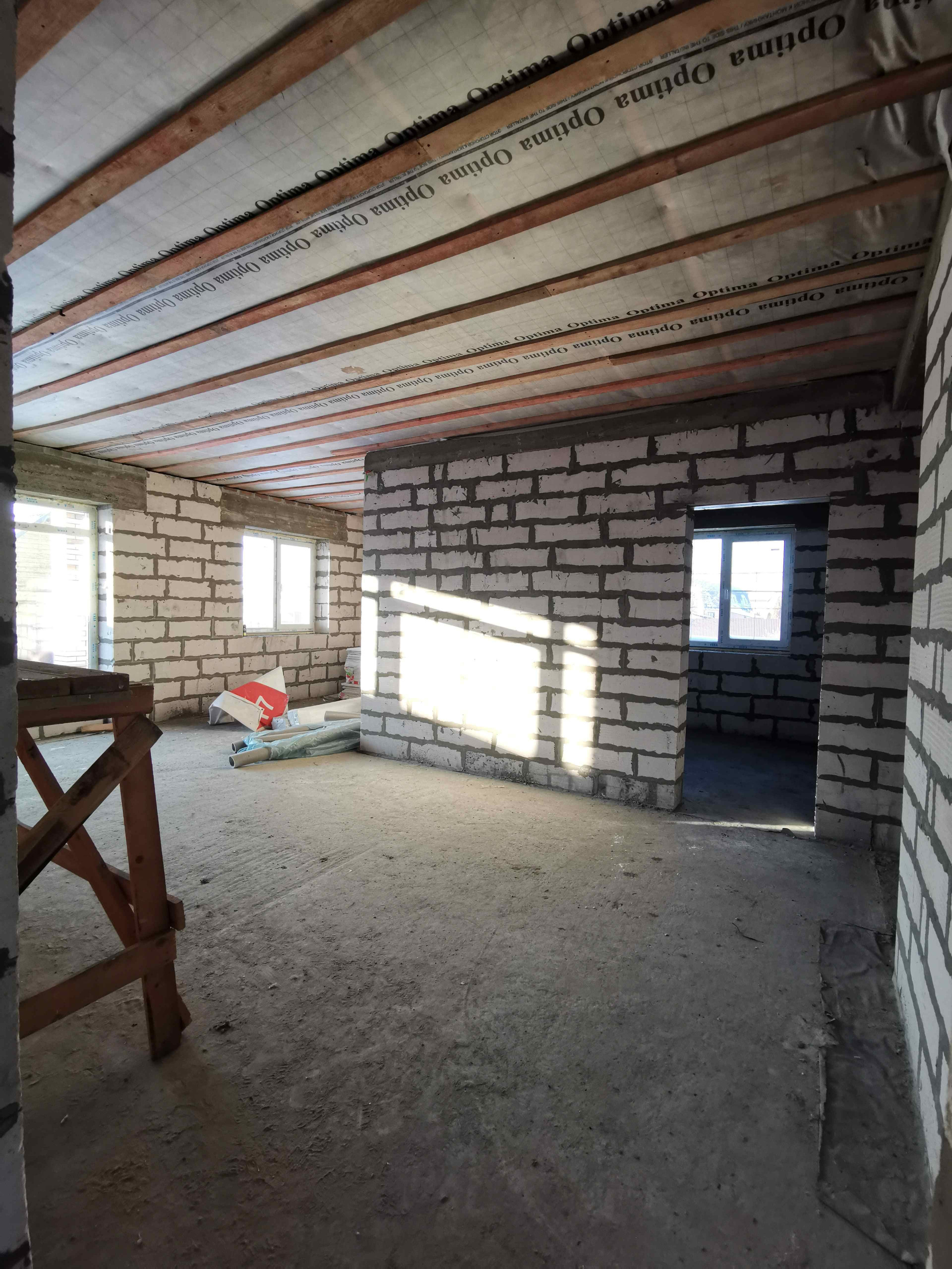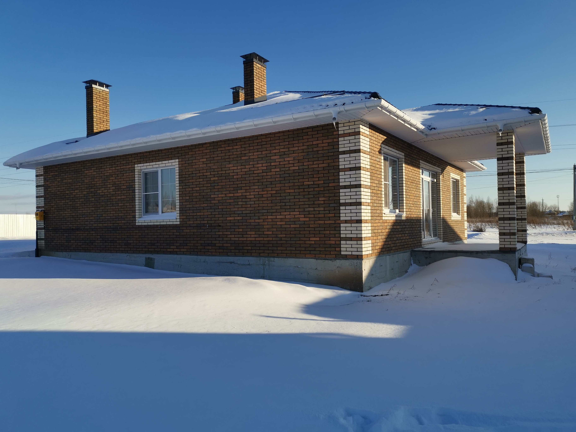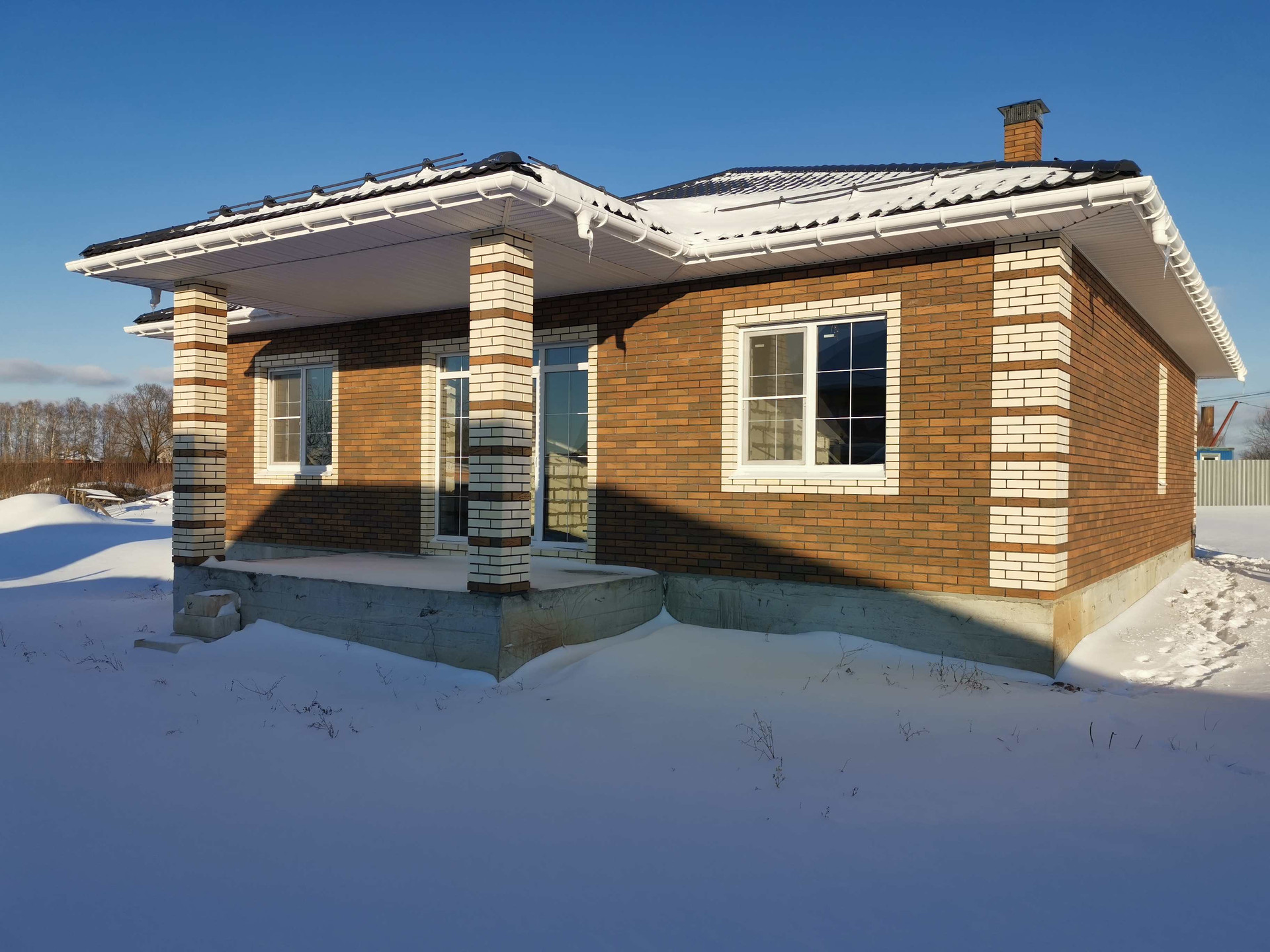 - Внешние стены из газоблока 375 мм, облицован кирпичем Braer.