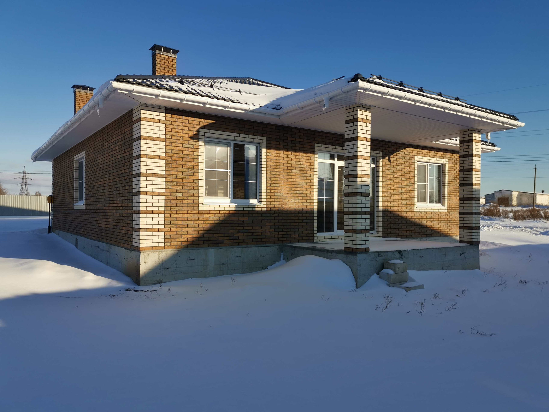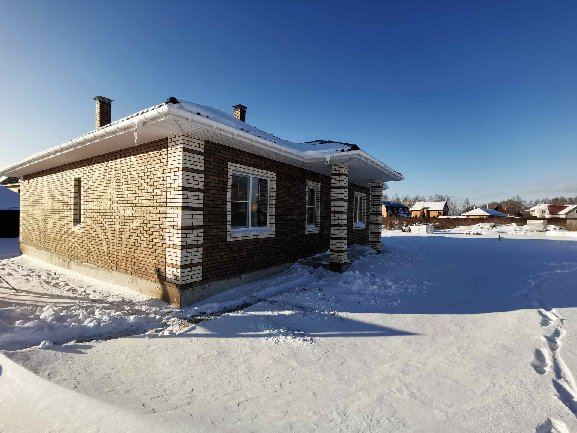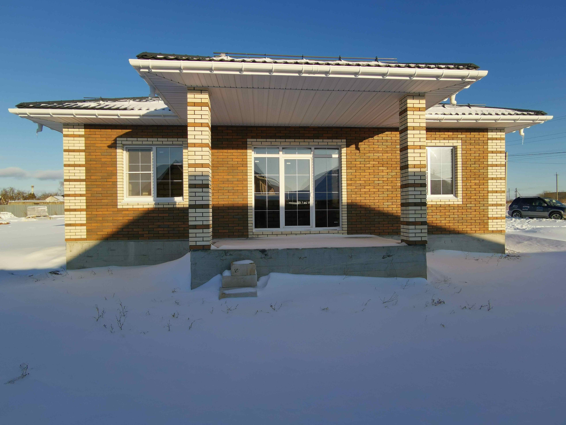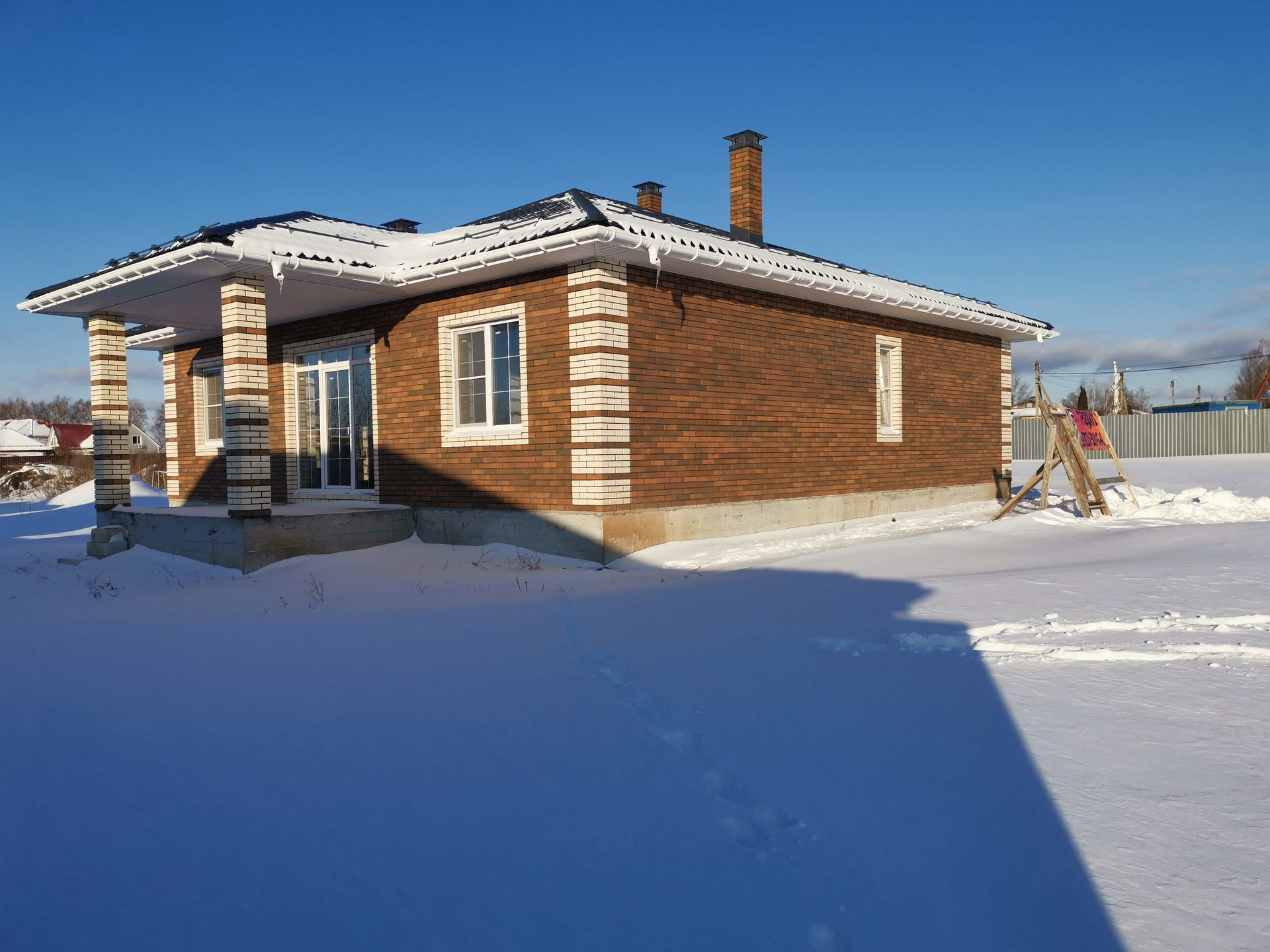 - Внешние стены из газоблока 375 мм, облицован кирпичем Braer.