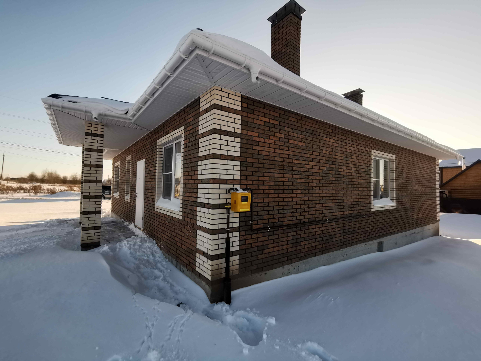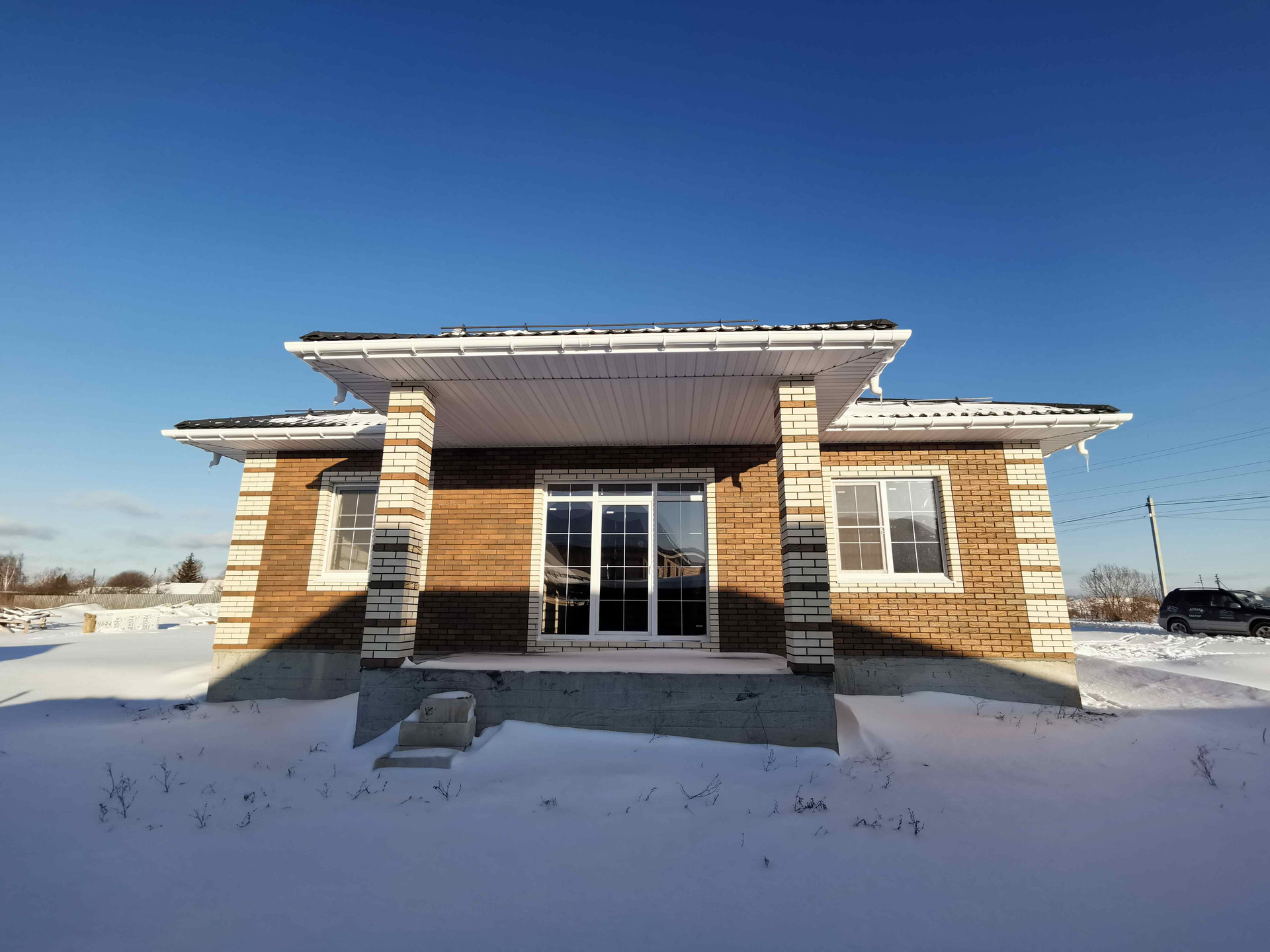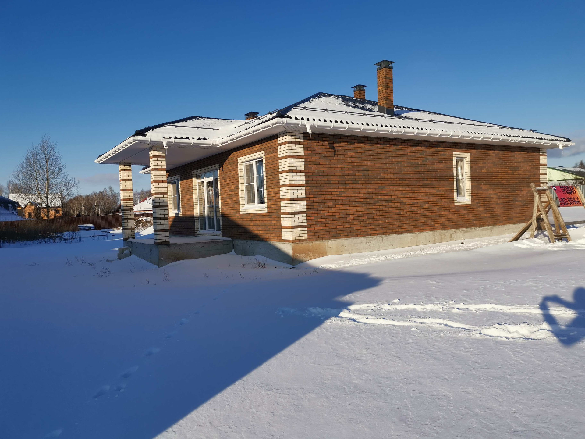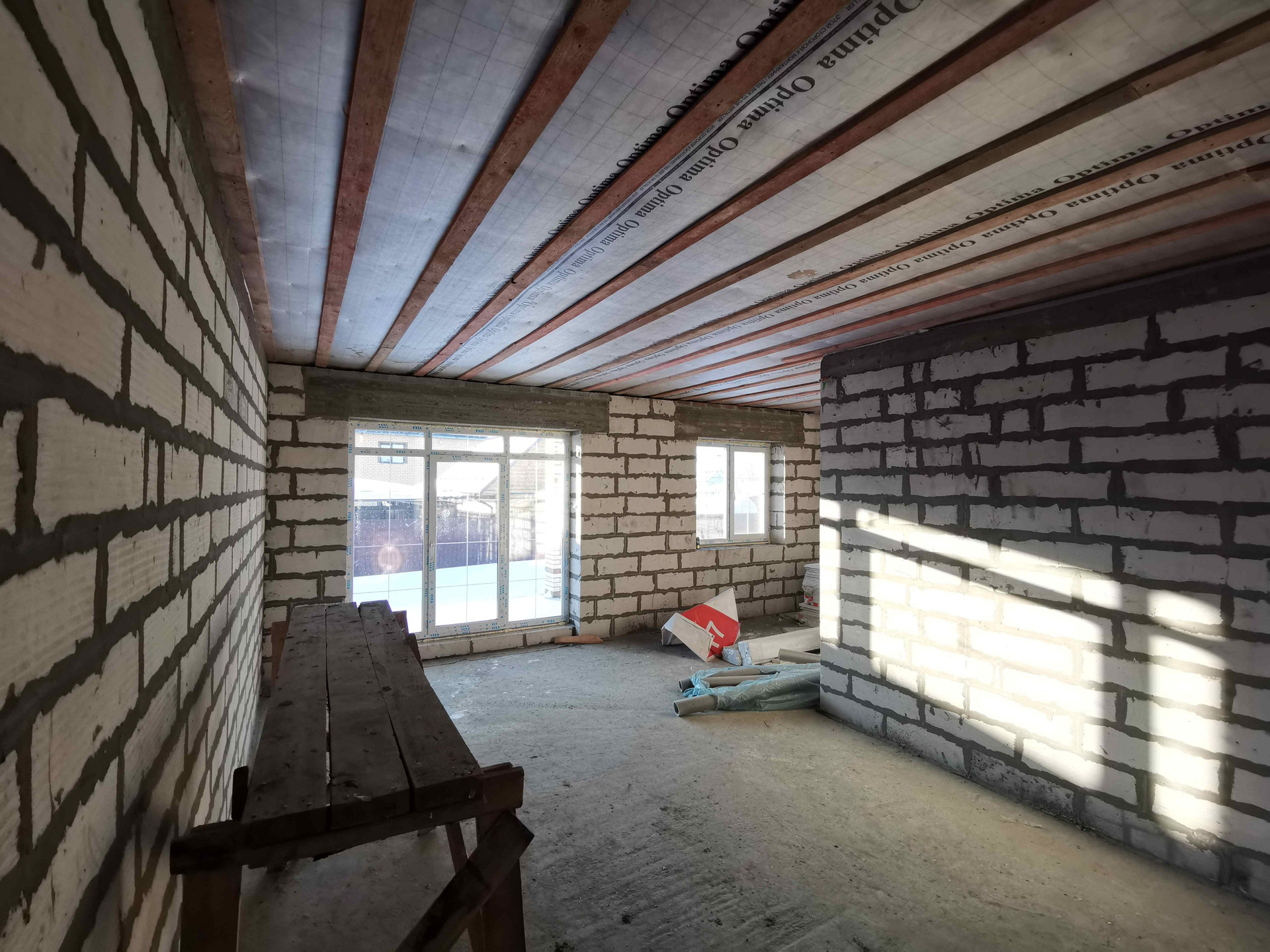 - Внешние стены из газоблока 375 мм, облицован кирпичем Braer.