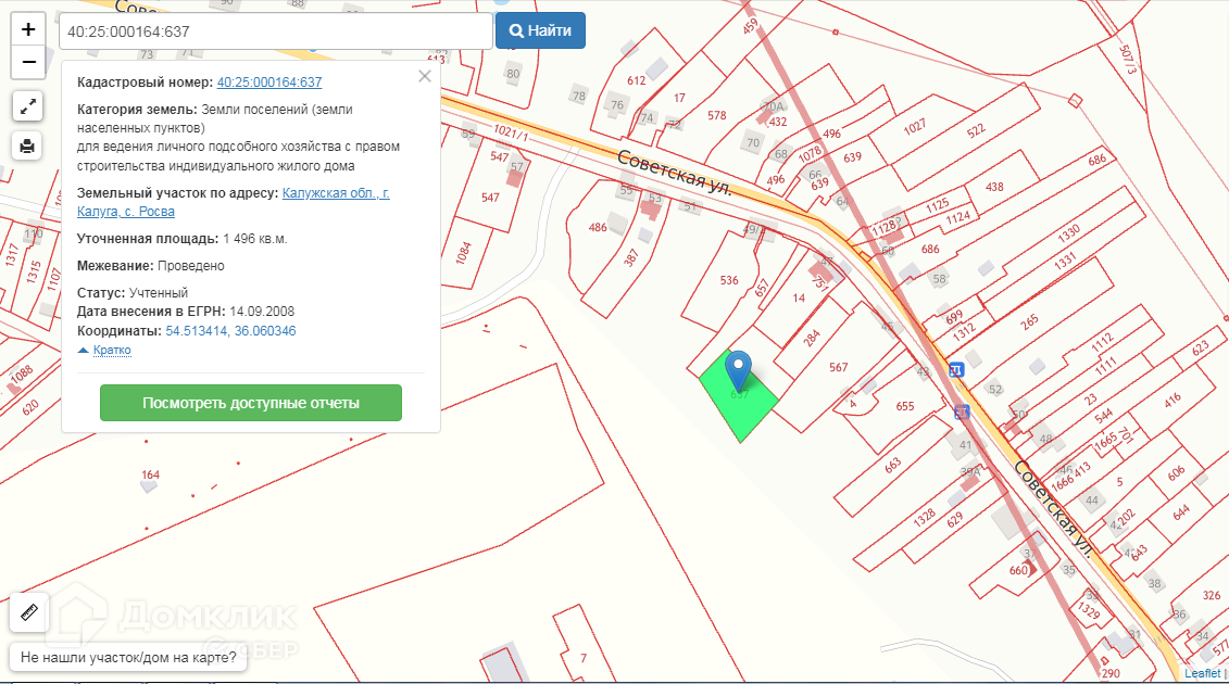 Кадастровый номер: 40:25:000164:637, Координаты: 54.513414, 36.060346