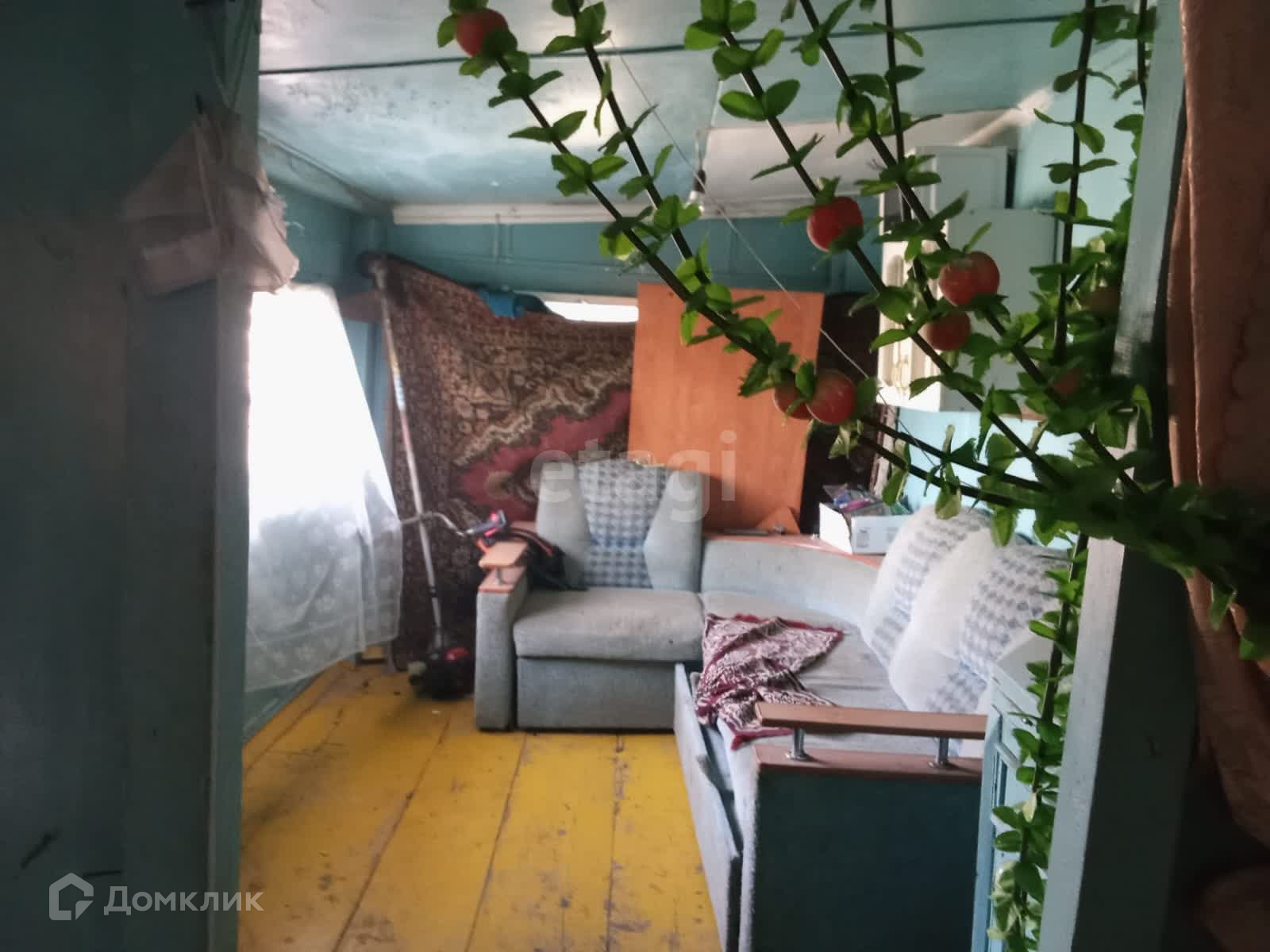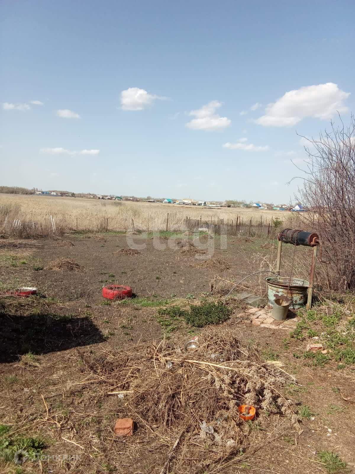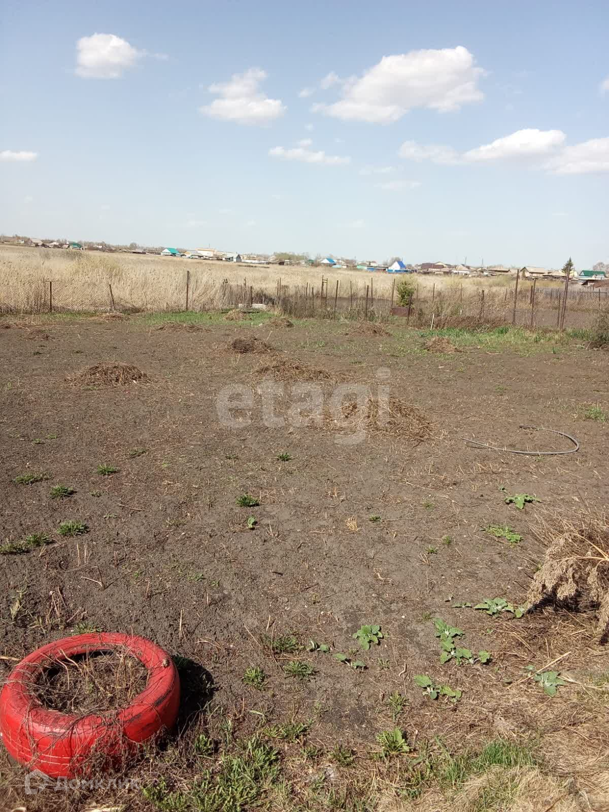 Огород разработан, растут плодово-ягодные деревья, кустарники. Забор из профнастила.