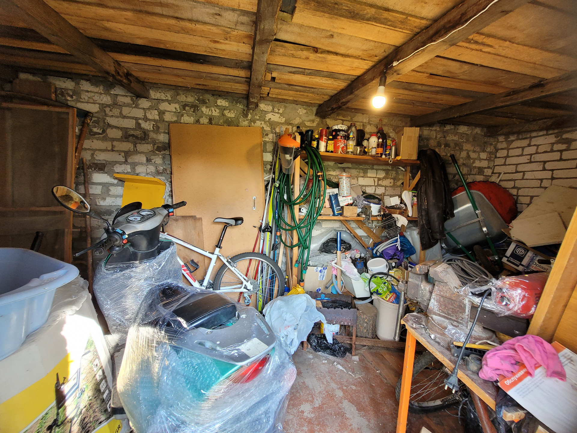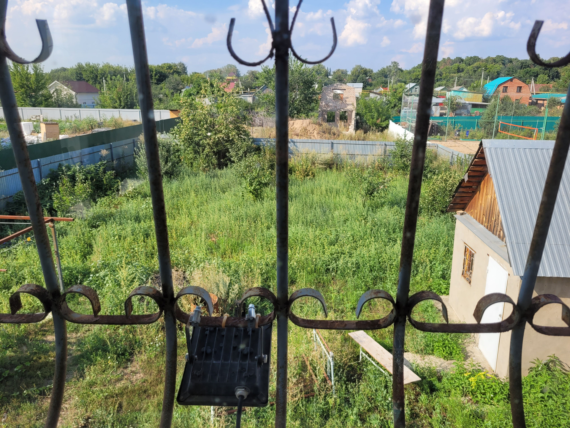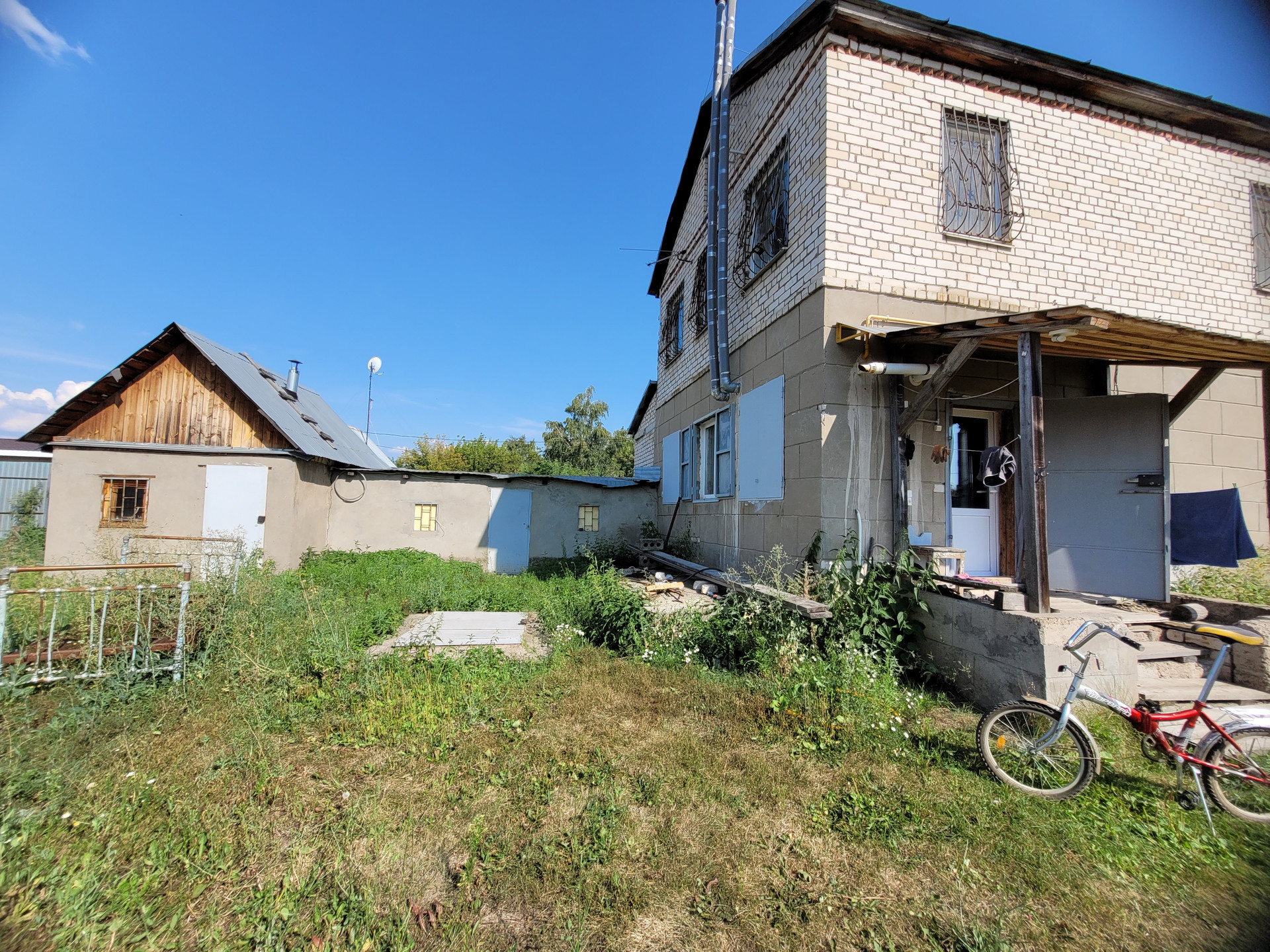 Есть пристрой для хранения инвентаря и всякой всячины. Установлен каркас под беседку, обвитый виноградной лозой.