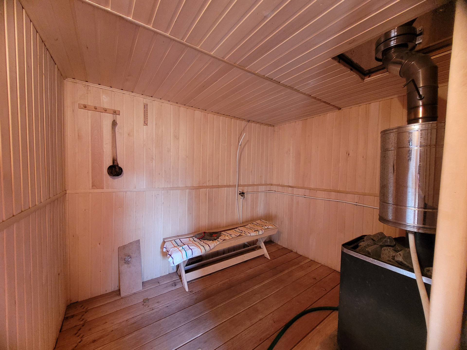 Шикарная БАНЯ обшита липой, предусмотрен слив из парной в общую выгребную яму (глубина 3 кольца по 1,5м, требует обслуживания раз в год). Запас дров в подарок новым собственникам.