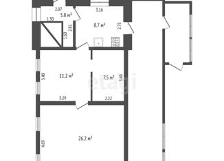 Общая площадь: 59.4 м2