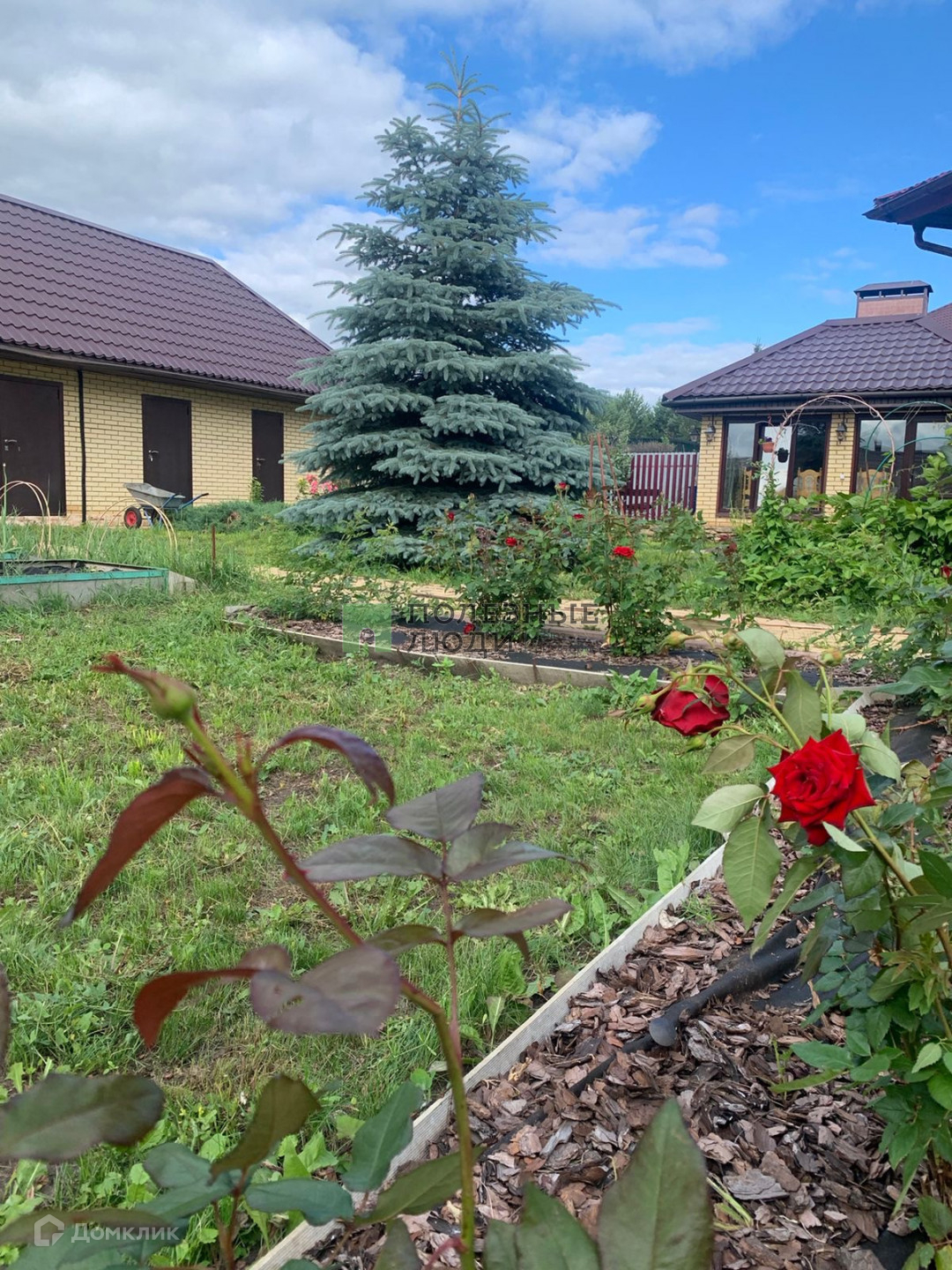 На участке, площадью 9,59 соток, сделан ландшафтный дизайн, растут различные культуры - яблони, груша, слива. Есть теплица с водяным накопителем и насосом.