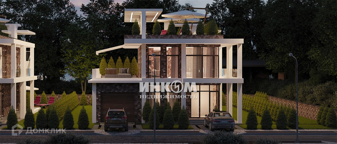 Архитектурное решение дома представляет собой 2-этажное строение с эксплуатируемой кровлей с камином, террасами и теплым паркингом на два автомобиля. Проект выполнен в стиле средиземноморских итальянских вилл с панорамными окнами и свободной планировкой. Дом располагается на участке 6,26 сотки земли.