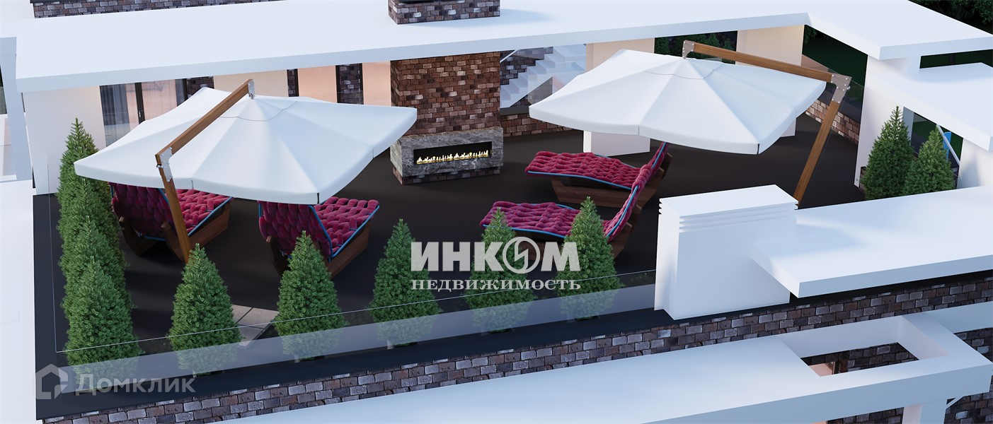 На 2-м этаже расположены 2 спальни, гардеробная, санузел, холл, 3 террасы. С террасы по внешней лестнице выход на эксплуатируемую кровлю с каминной зоной