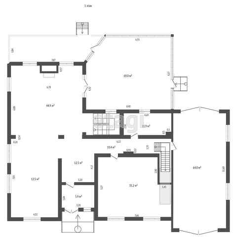 На первом этаже - остекленный отапливаемый зимний сад, гостиная, кухня, с/у, гостевая комната, большая гардеробная. На втором этаже - три спальни, в том числе мастер-спальня, 1 с/у, терраса. Цокольный этаж - комната отдыха с домашним кинотеатром и мягкой мебелью, бильярдная, постирочная, комната хранения, котельная, комната для персонала.