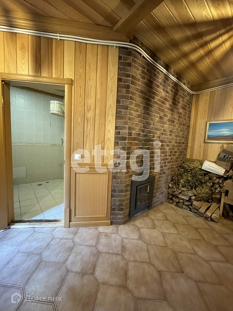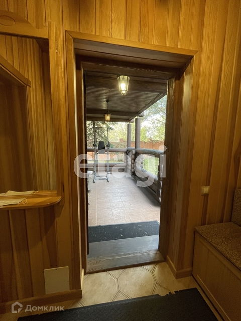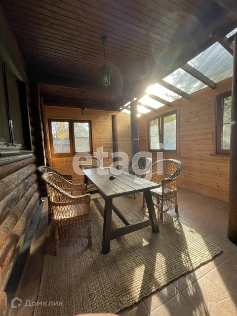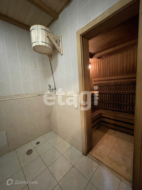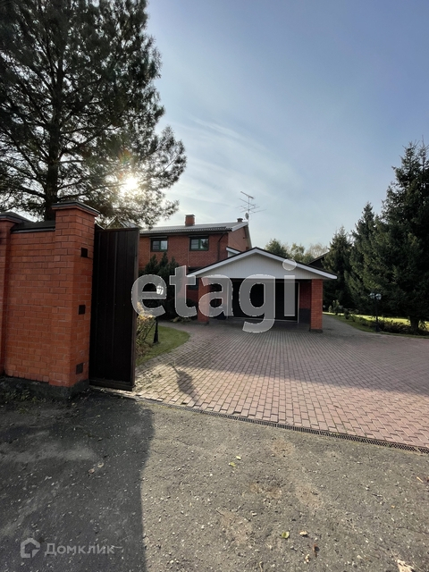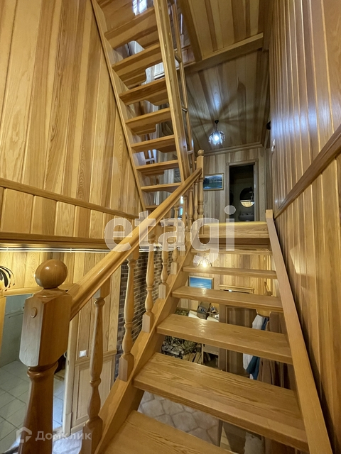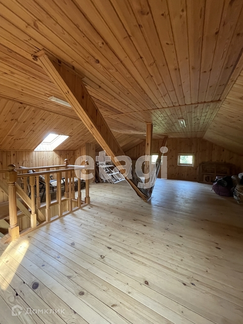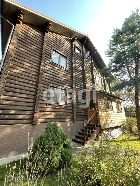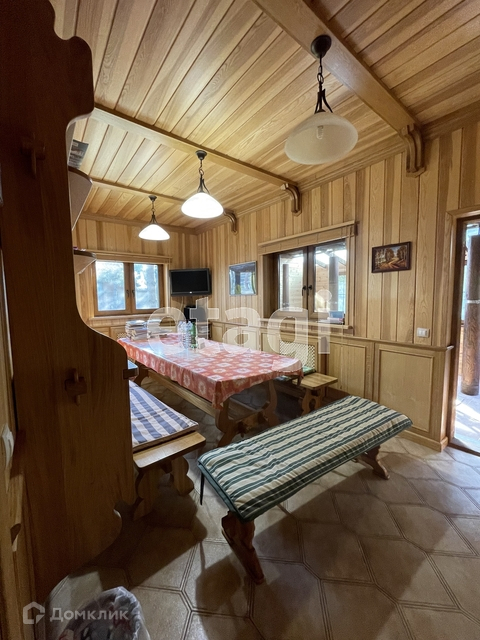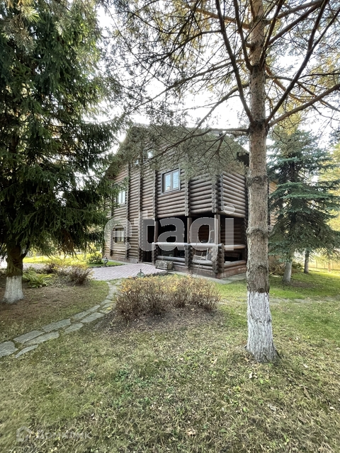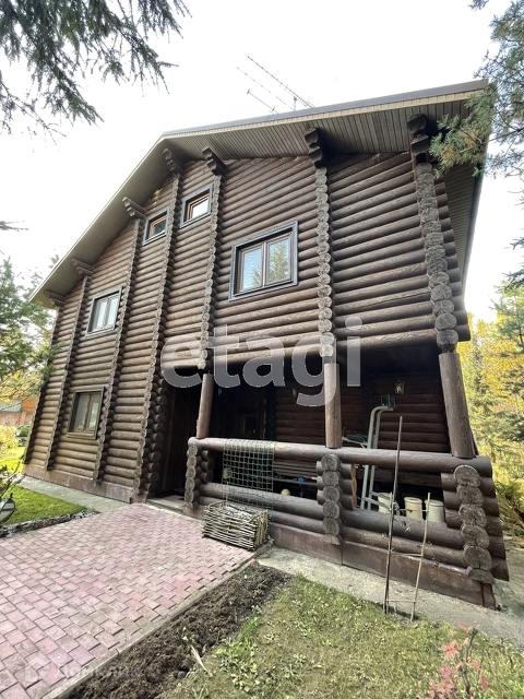 Гостевой дом - деревянный двухэтажный, 300 кв.м, построенный из оцилиндрованного бруса, полностью меблированный, с баней, душевой, комнатой отдыха. На первом этаже - прихожая, кухня, спальня, выход на террасу, баня. На втором этаже 3 спальни, кабинет с/у. Третий этаж - мансарда.