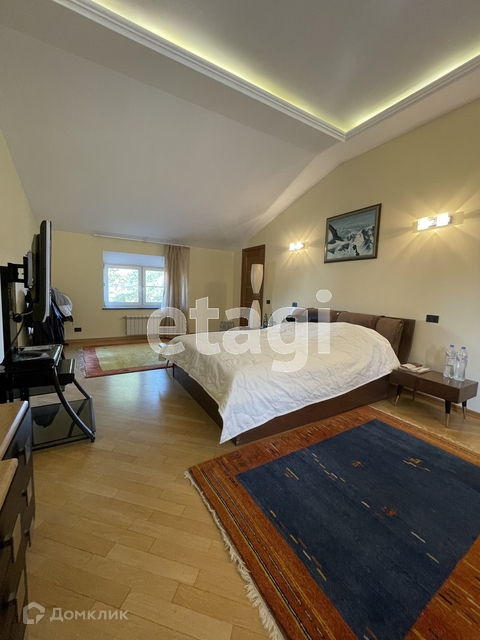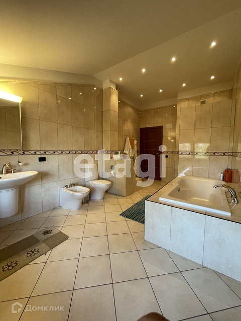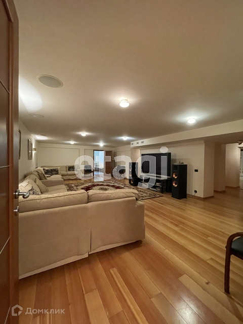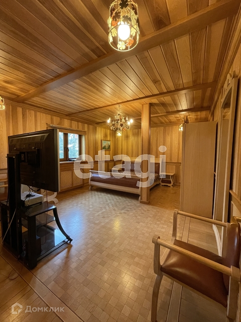 На первом этаже - остекленный отапливаемый зимний сад, гостиная, кухня, с/у, гостевая комната, большая гардеробная. На втором этаже - три спальни, в том числе мастер-спальня, 1 с/у, терраса. Цокольный этаж - комната отдыха с домашним кинотеатром и мягкой мебелью, бильярдная, постирочная, комната хранения, котельная, комната для персонала.