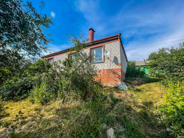 Дом построен из дуба и обложен кирпичом. В доме 2 изолированные комнаты и 2 комнаты проходные. Большая кухня, с отличным видом на участок и лес. Отдельный сан. узел, совмещен. В доме есть подвал и лаз на чердак.
