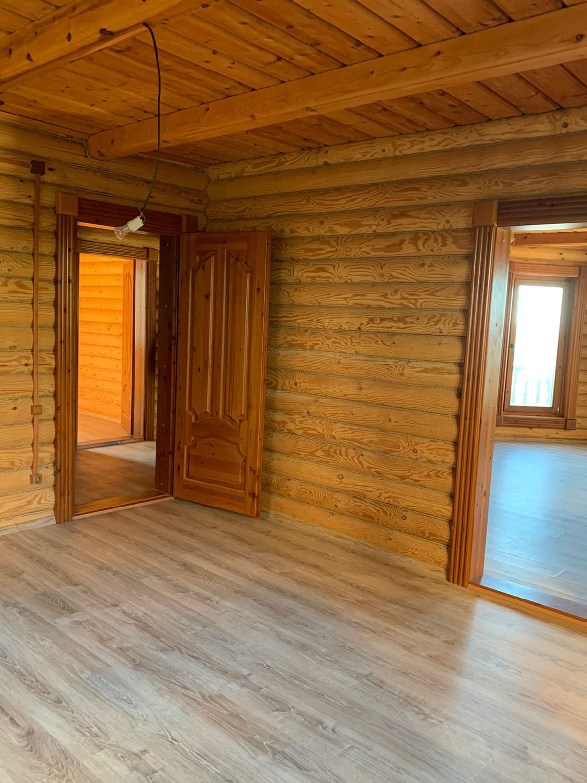 Второй этаж выполнен из натурального обработанного кедра, и запах в доме стоит просто невероятный!! Там же отделены 3 комнаты, одна большая отлично подойдет под гостиную, а две поменьше под спальню.