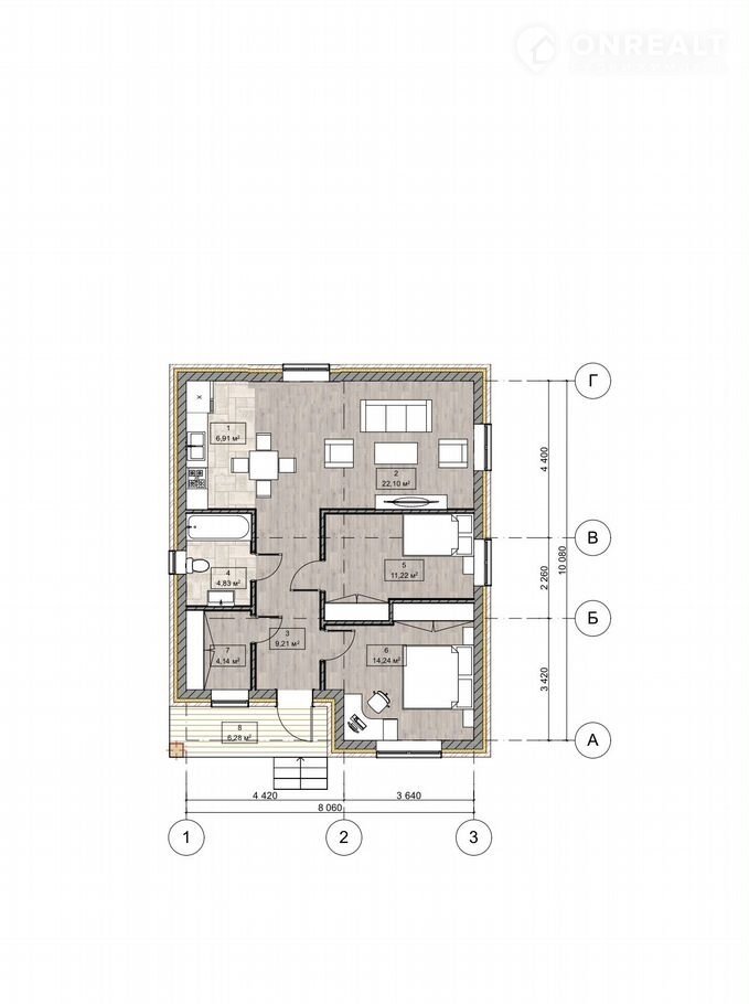 Описание дома: Площадь дома: 80 м2.