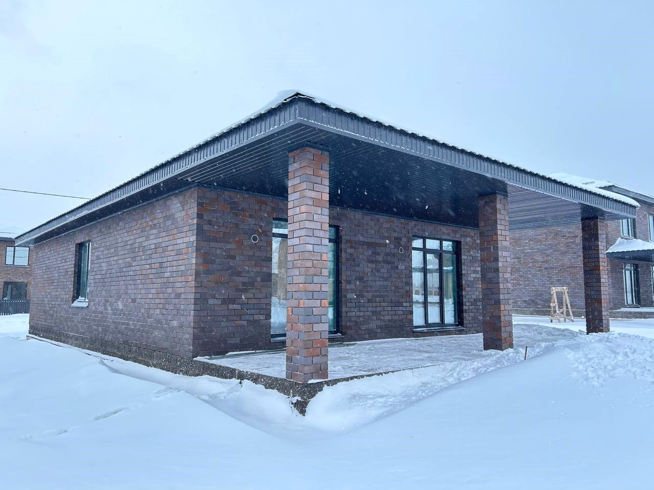 Конструктив дома: стены полнотелый кирпич + пенополистирол + облицовочный кирпич.