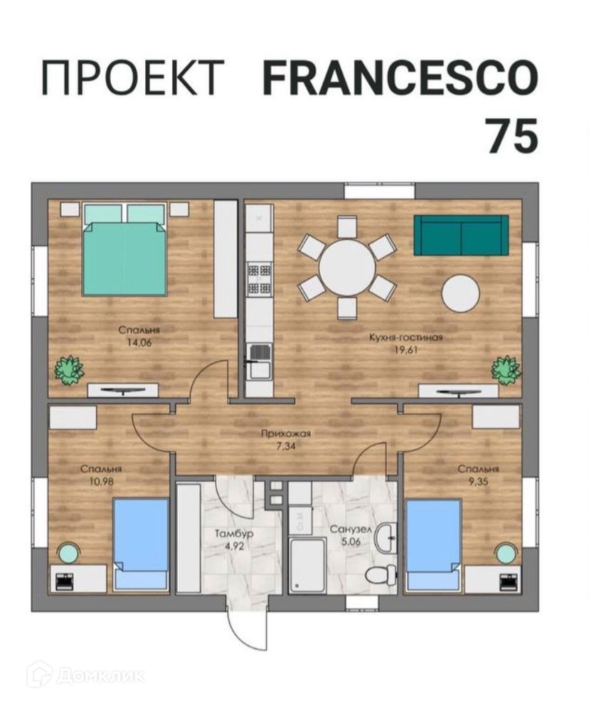 Общая площадь 75 м2