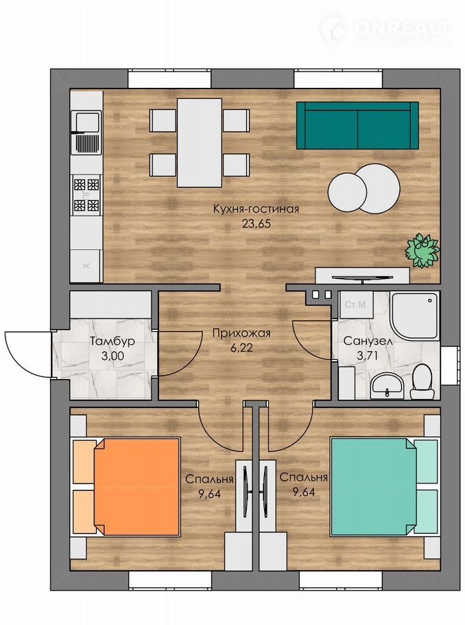Общая площадь 60 м2