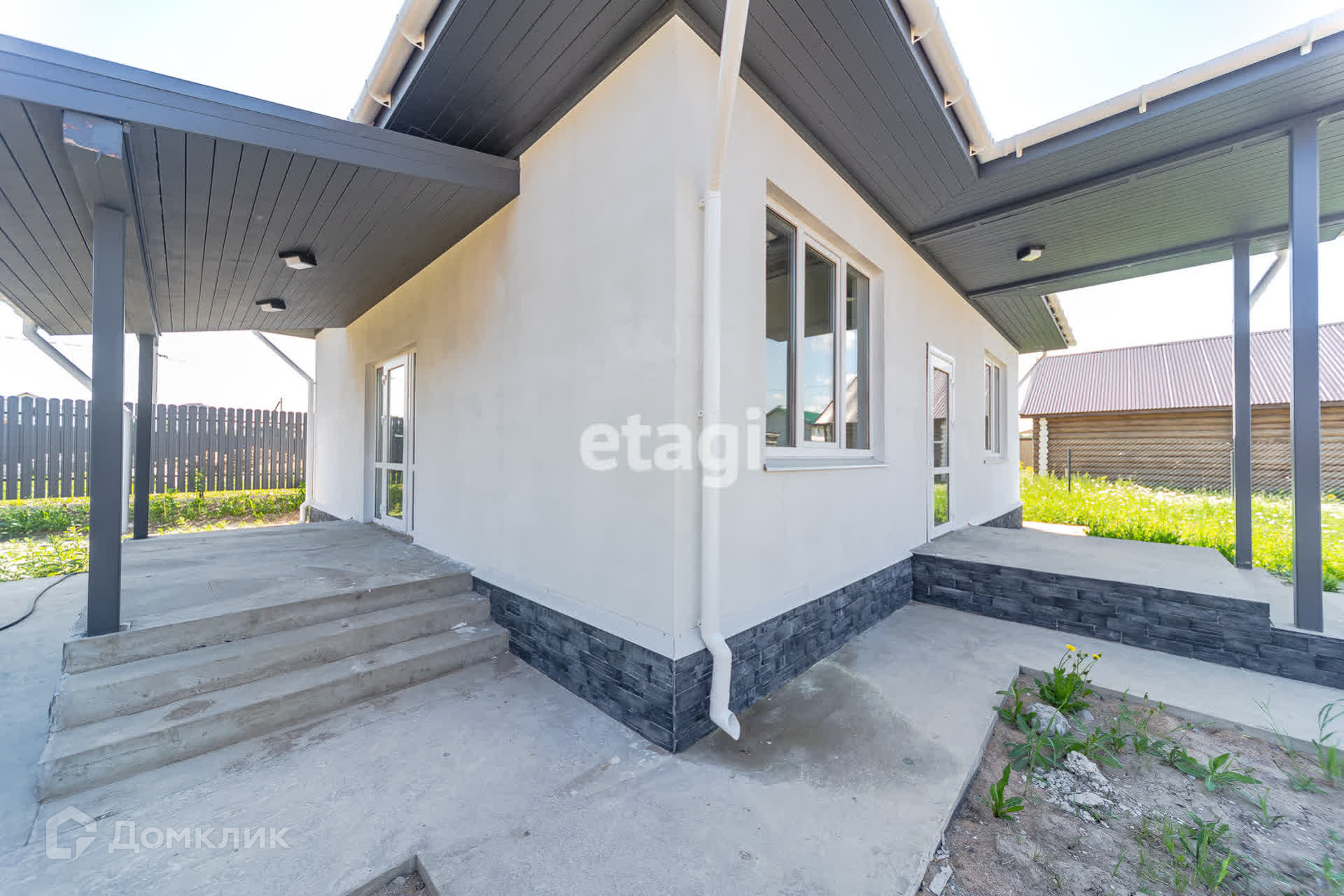 Наружная отделка - декоративная штукатурка, внутри подчистовая, что позволит выбрать материалы по своим предпочтениям.