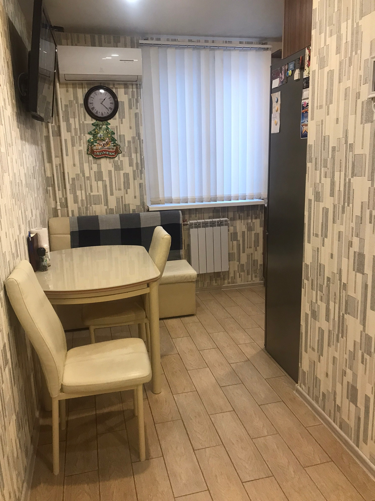 кафельная  плитка  с подогревом ( кухня прихожая), в с/у плитка. Квартира продается полностью со всей метелью и бытовой техникой. Продавцы заберут только телевизоры и личные вещи. Более 5 лет в собственности. Встречная покупка.