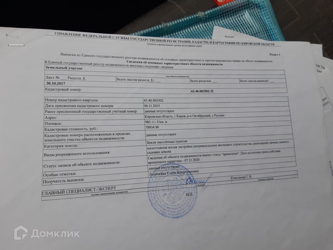 В продаже Земельный участок 10 соток, по адресу: Кировская область, село.Русское. Поселок БАХТА.