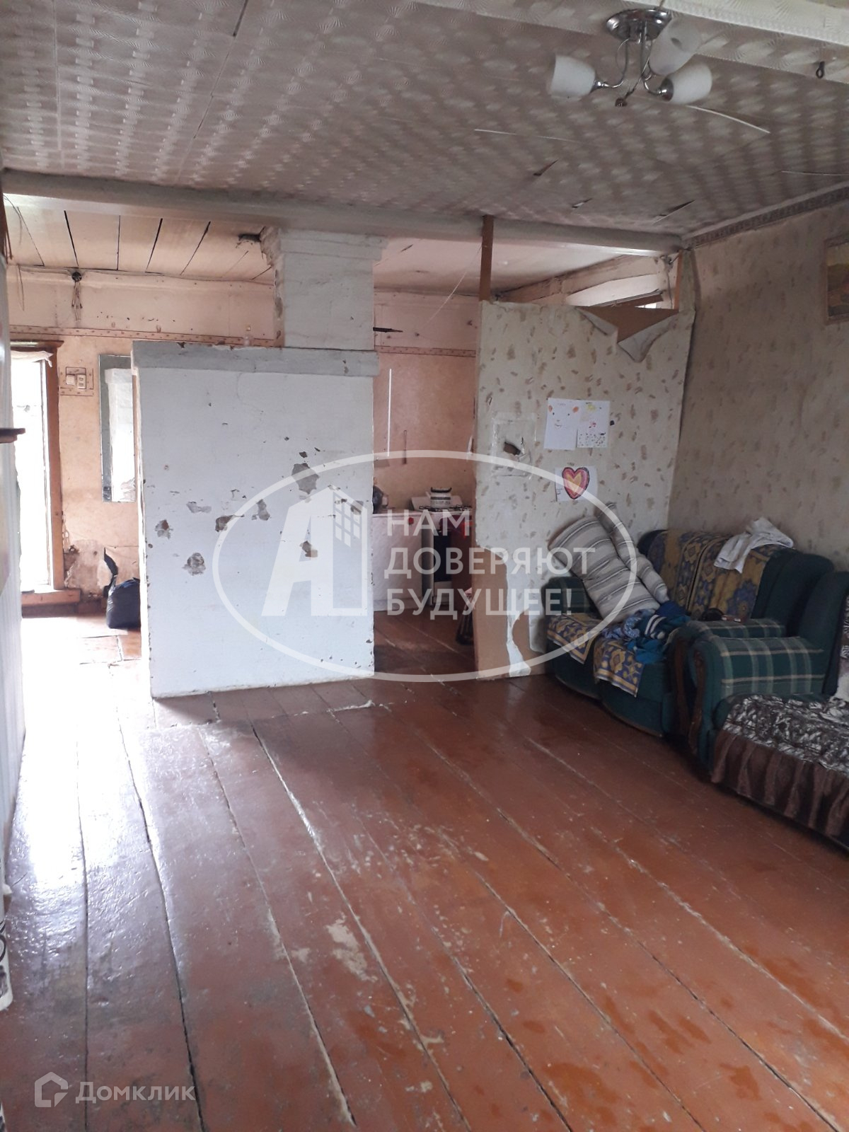 общей площадью 43 кв.м. на участке 12 соток. Дом из бревна с печным отоплением, состоит из 2 комнат, центральный водопровод, также на участке имеется гараж, баня, конюшня. Во дворе залит фундамент для нового дома размером 7*8. В селе развита вся инфраструктура, школа, детский сад, магазины. Живописная природа, рядом пруд. Круглогодичный подъезд до самого дома. (Номер объекта в базе 112069)