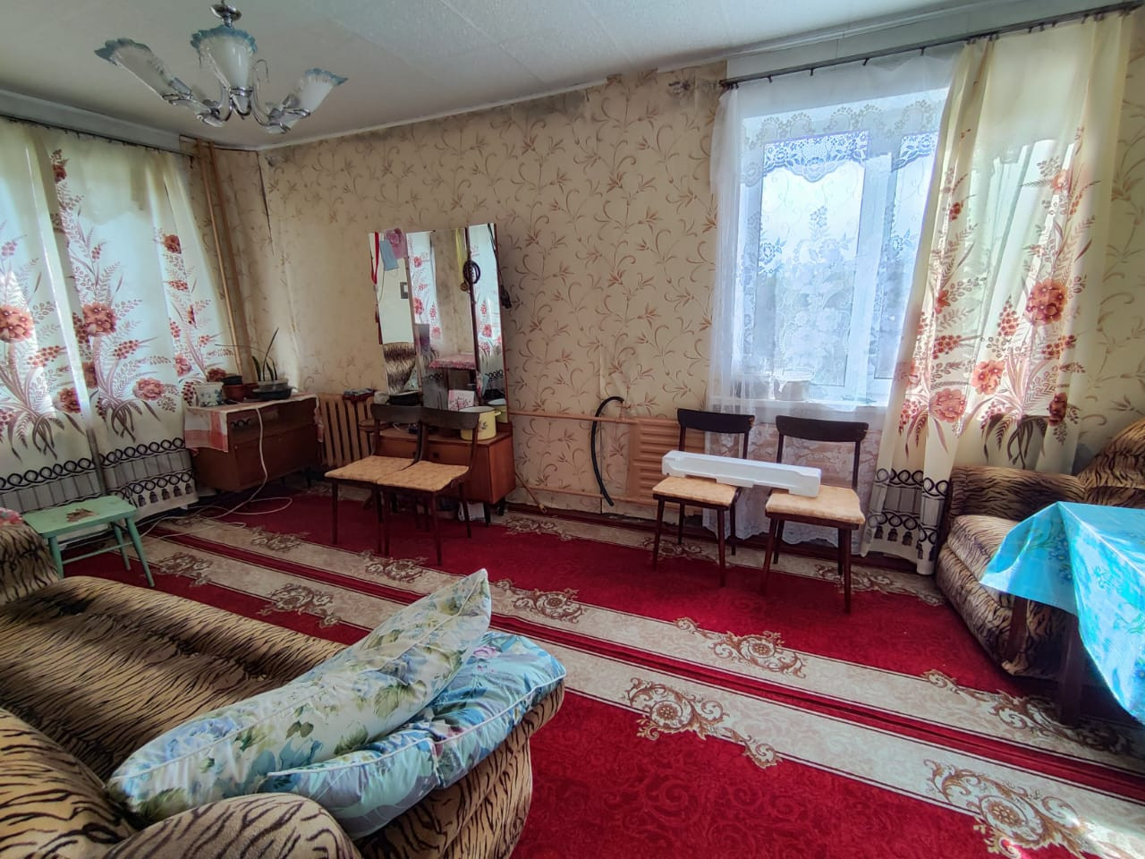 Три изолированные комнаты (18, 11 и 9 м2) .  Санузел раздельный. Отопление водяное центральное (ведется газификация района). Окна выходят на юг и восток. Много мест для парковки. Полностью пластиковые стеклопакеты, на всех окнах. Есть вся необходимая бытовая техника, в т.ч. электроплита, накопительный водонагреватель/бойлер.