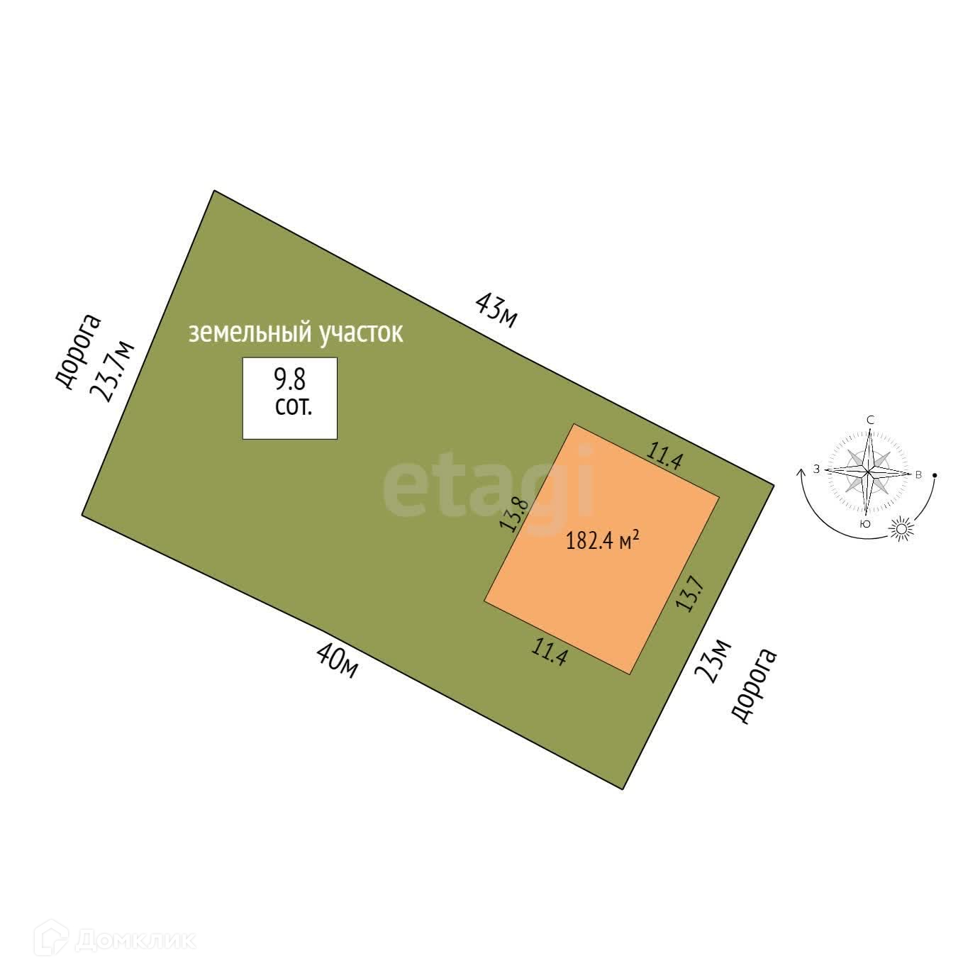 Площадь участка 9.8 сот.