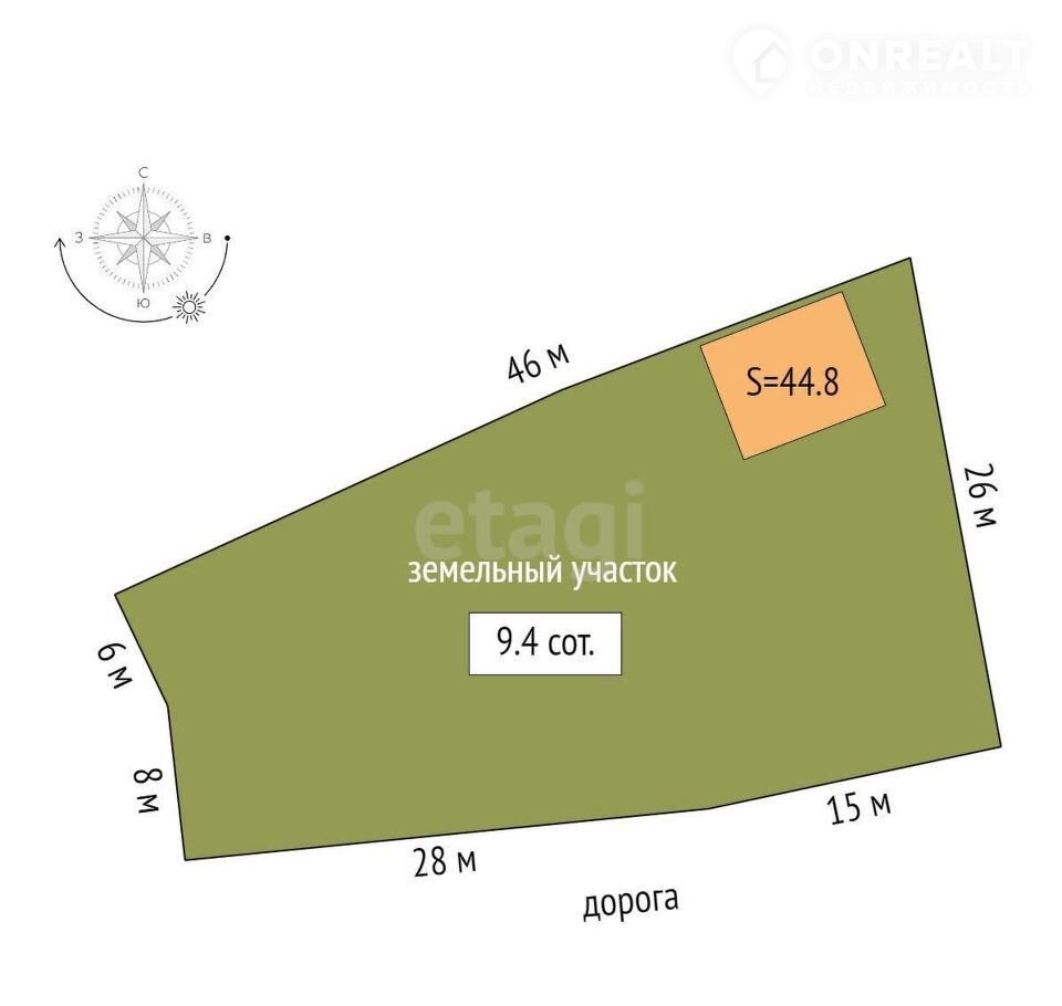 Площадь участка 9.4 сот.