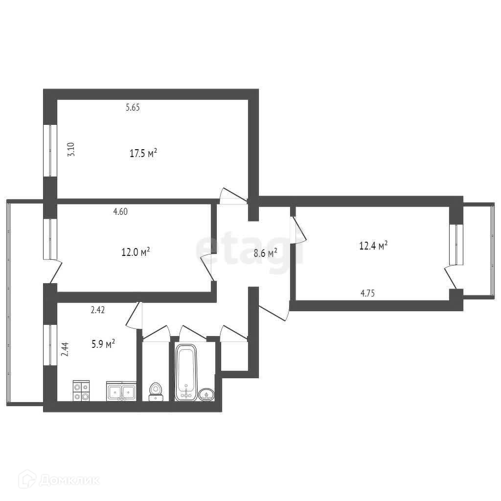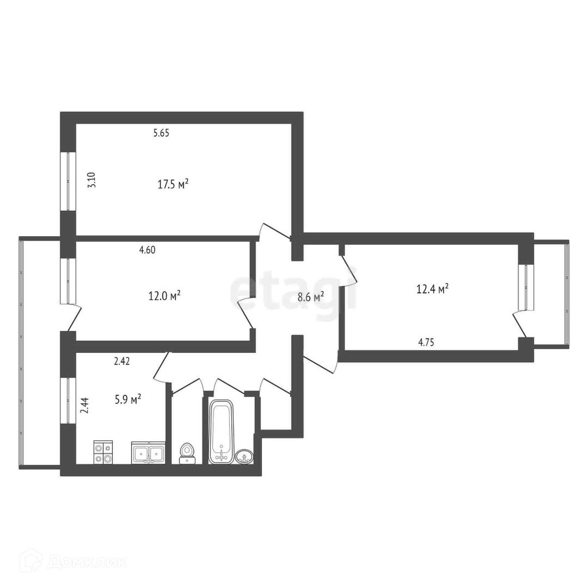 Общая площадь 60.2 м2