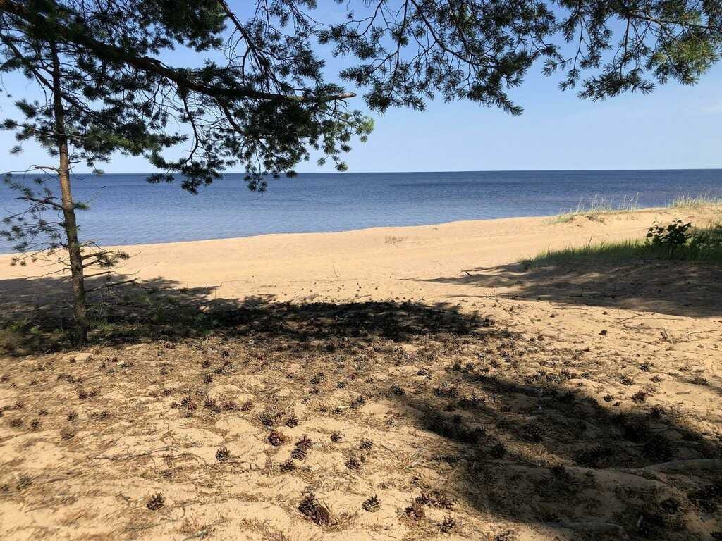 - Первая береговая линия, через небольшой пролесок выход к пляжу и к чистейшему берегу Онежского озера. От участка до озера природоохранная зона, соответственно ничего строиться не будет.