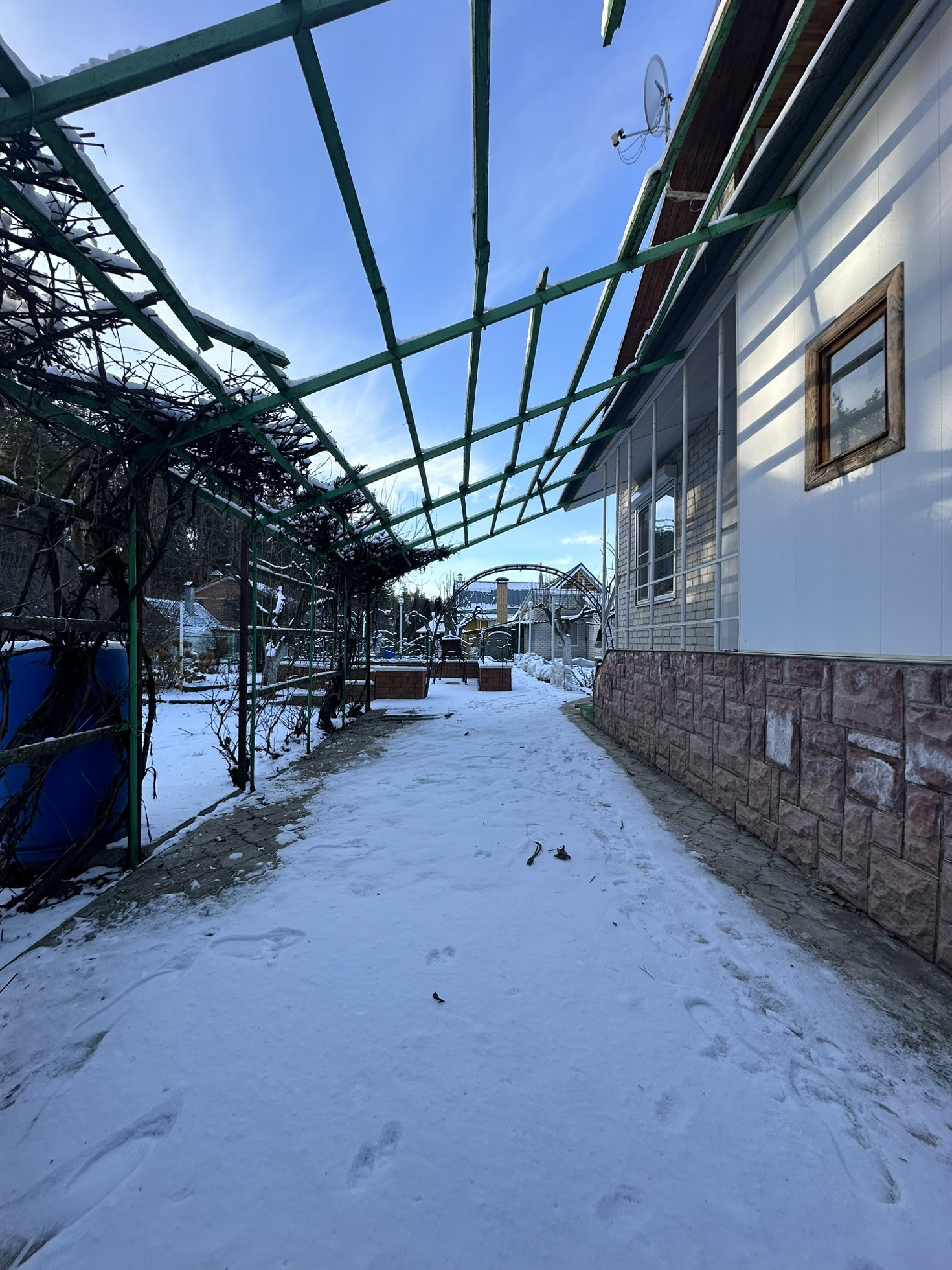 Участок правильно формы 6 соток. На территории участка можно припарковать два автомобиля. Имеется зона барбекю. Русская баня, кирпичный домик 30 метров из двух комнат.