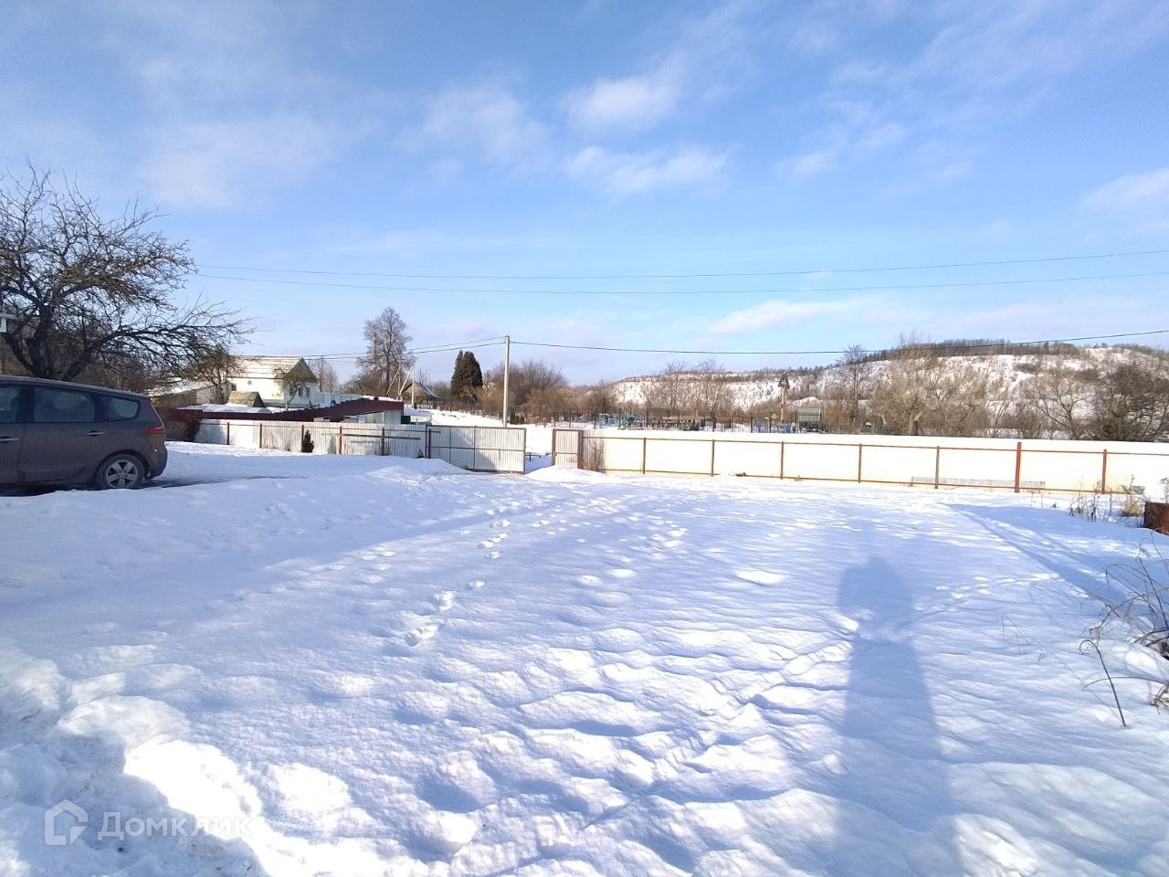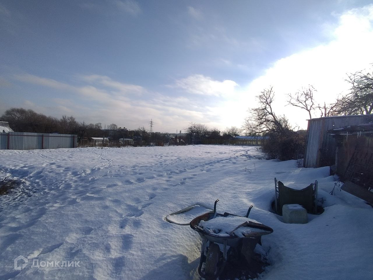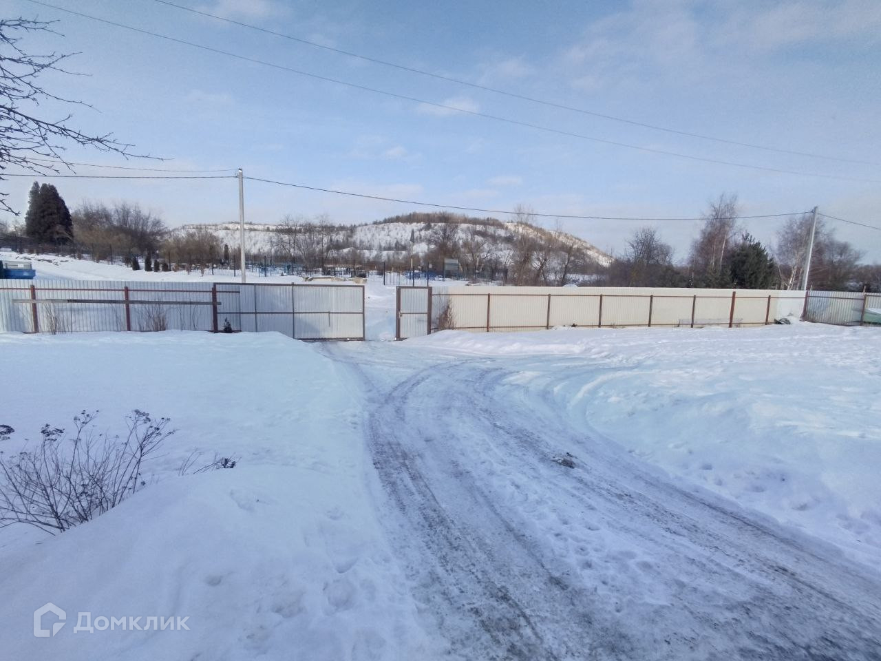 Фронтальная и частично боковые стороны огорожены профлистом, остальное рабицей. Ворота откатные.