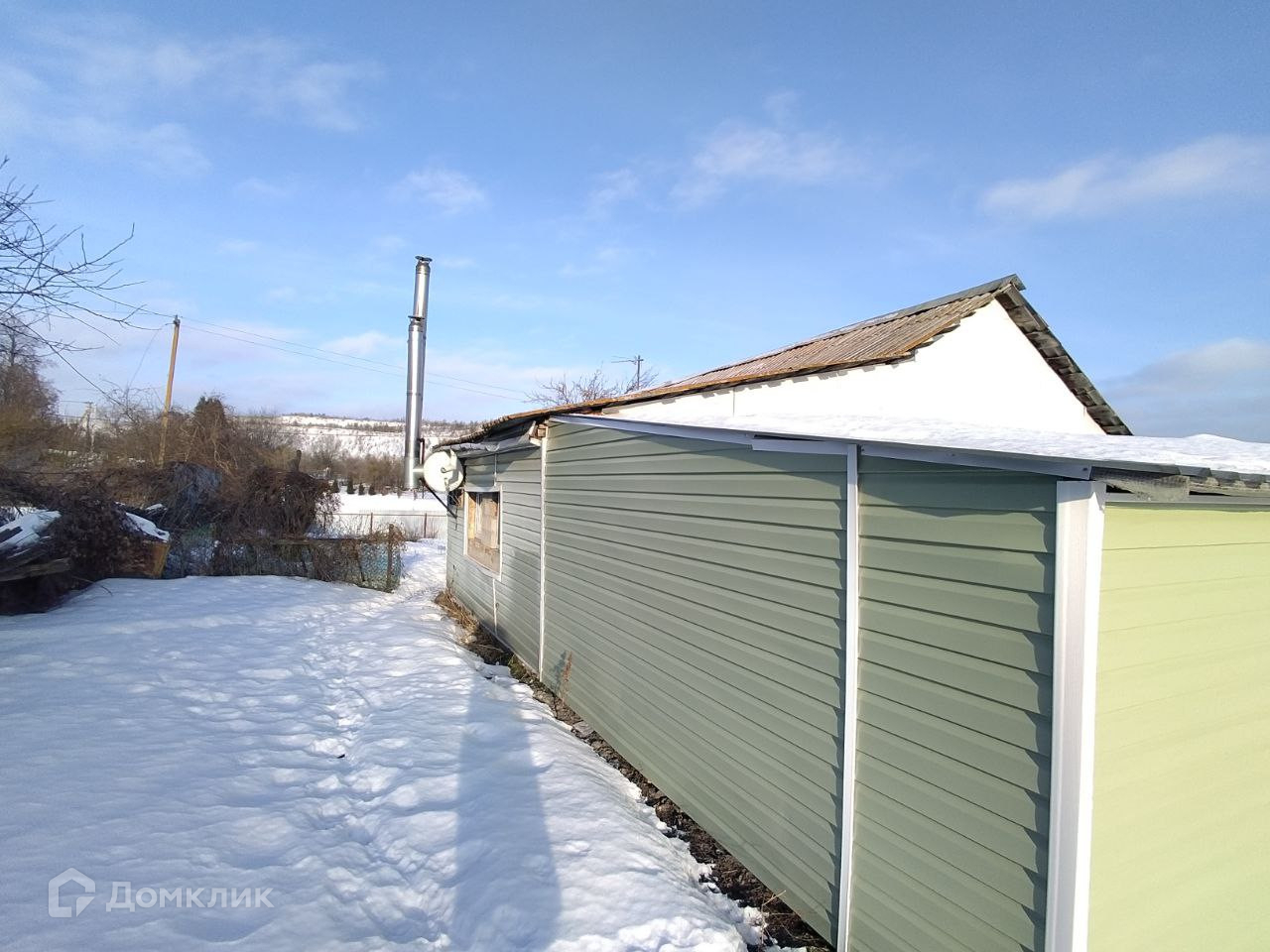 Пристройка выполняет роль входной группы и помещения для хозяйственных нужд. Построена из блоков. Там же имеется помещение, отлично подходящее для оборудования бани, либо летней кухни. Внешняя отделка дома - сайдинг.