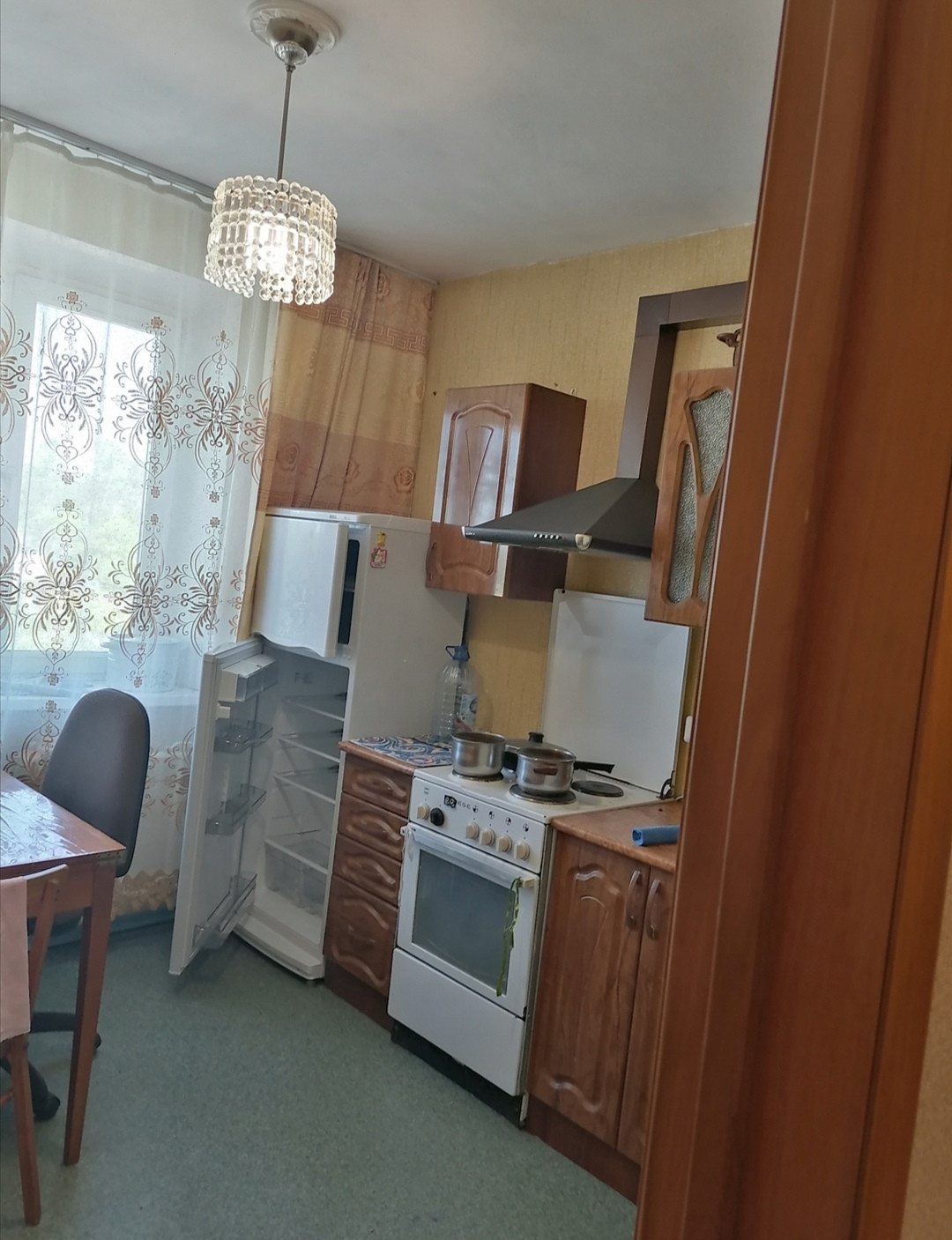 Мебель частично остается (кухонный гарнитур, встроенные шкафы).