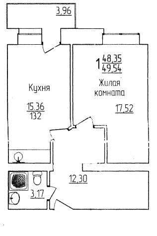 Общая площадь 49.54 м2
