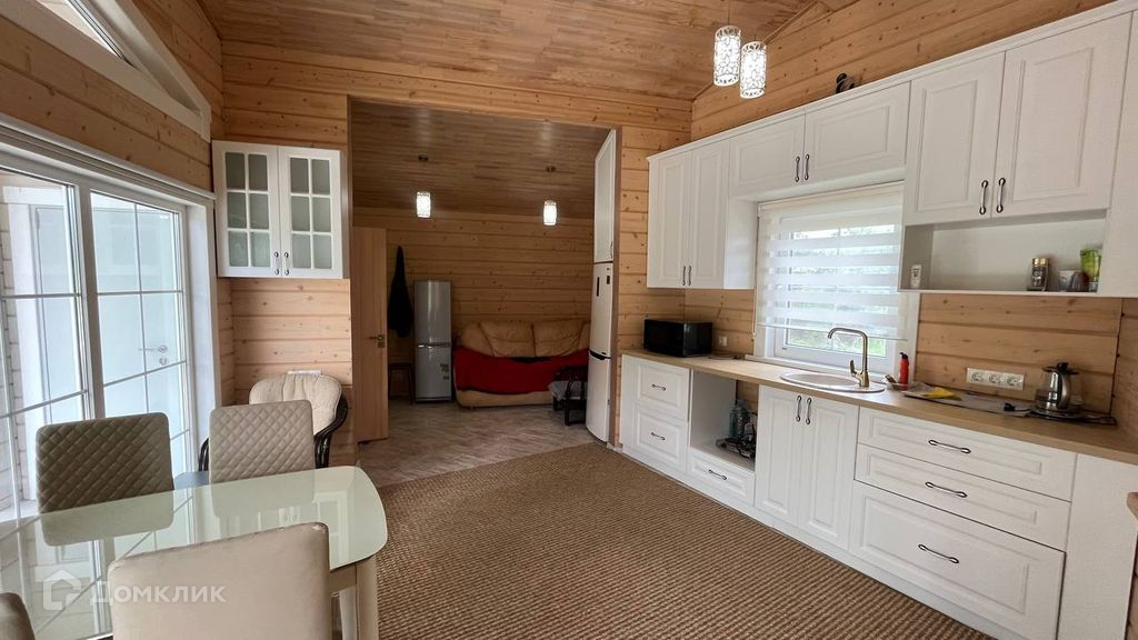 На участке расположен дом из бруса, снаружи имеется небольшая веранда , внутри обустроена кухня гостиная, банька на дровах с эксклюзивной печкой, просторная душевая, русский душ, всё остается