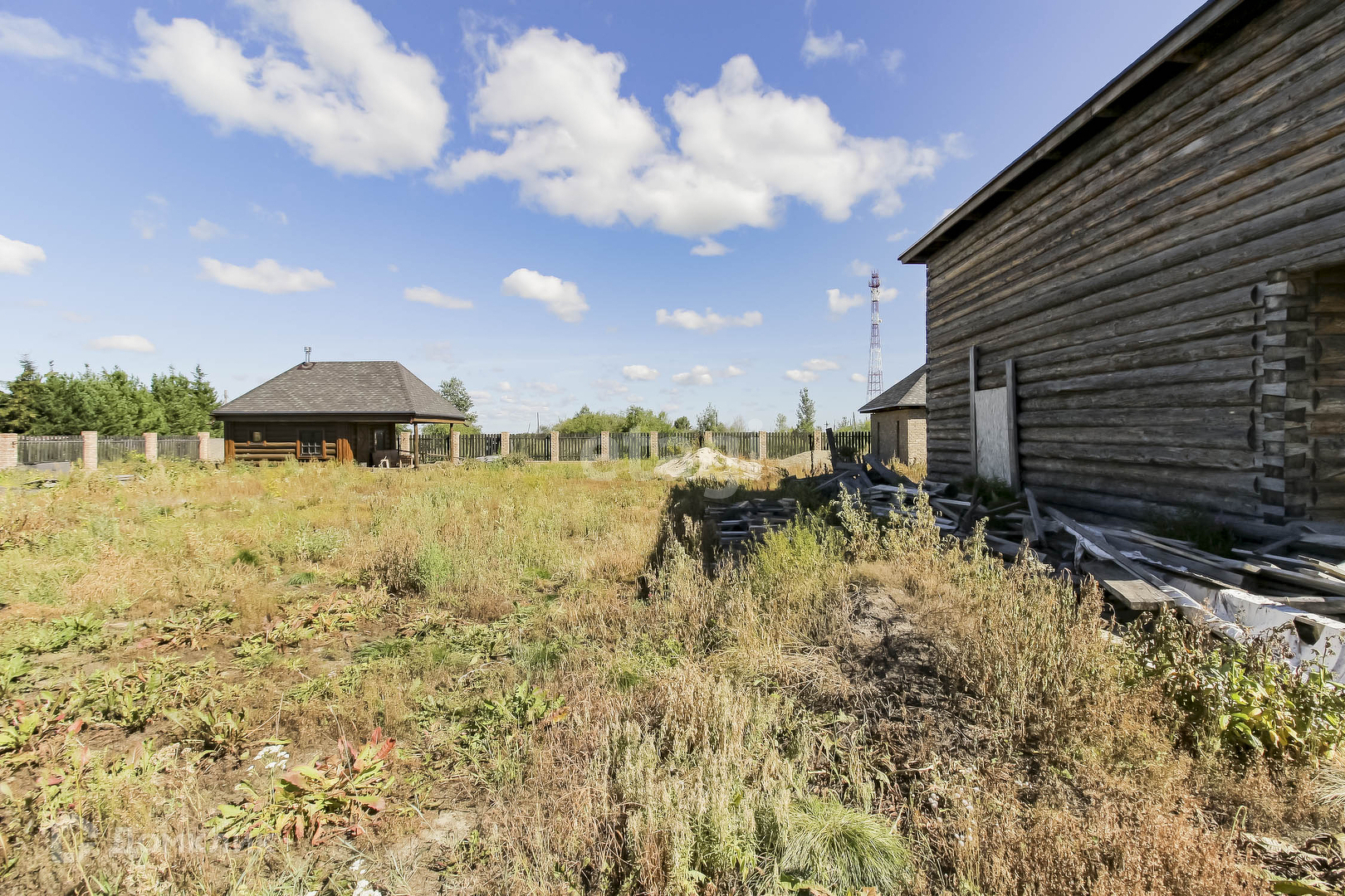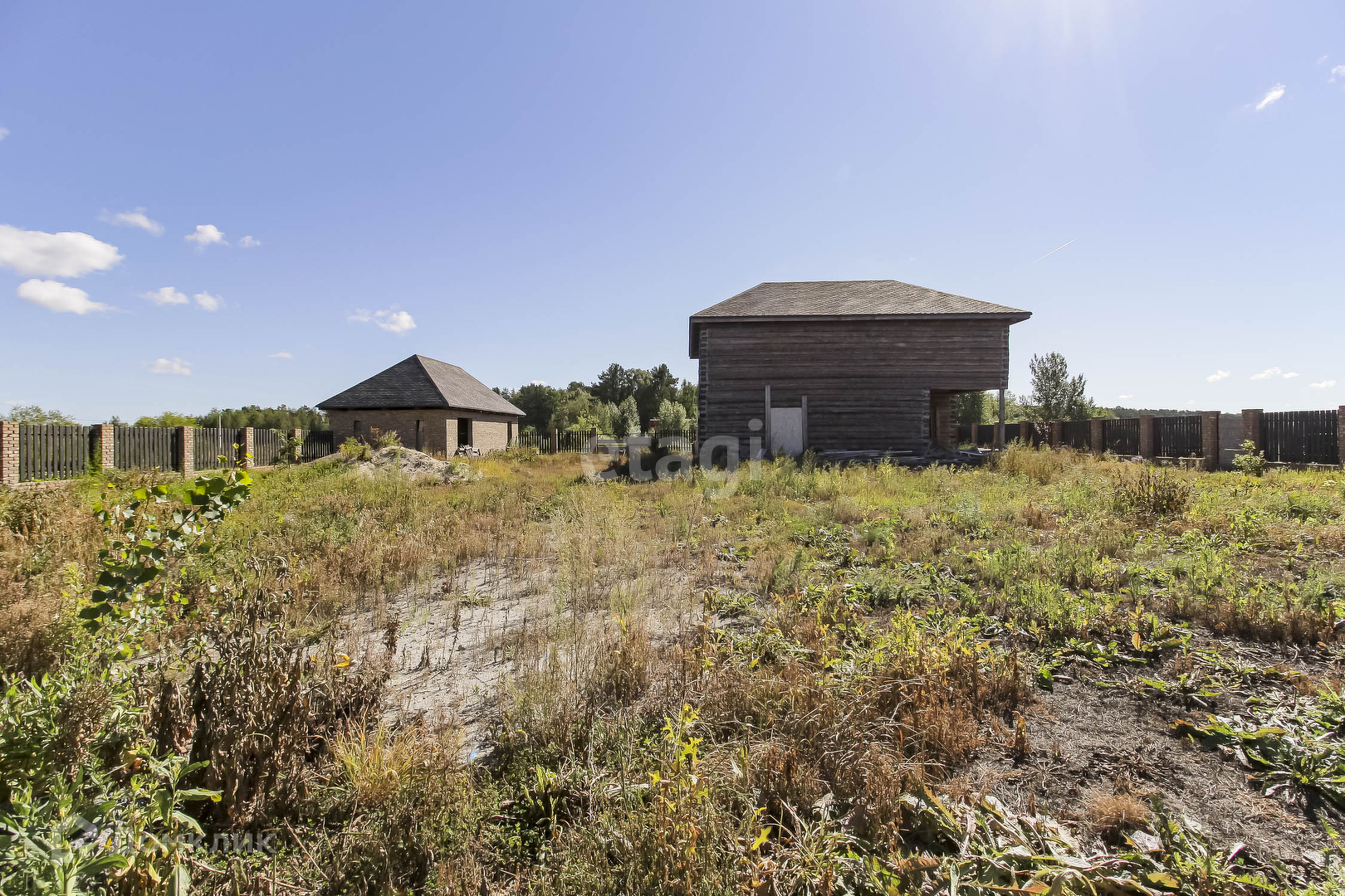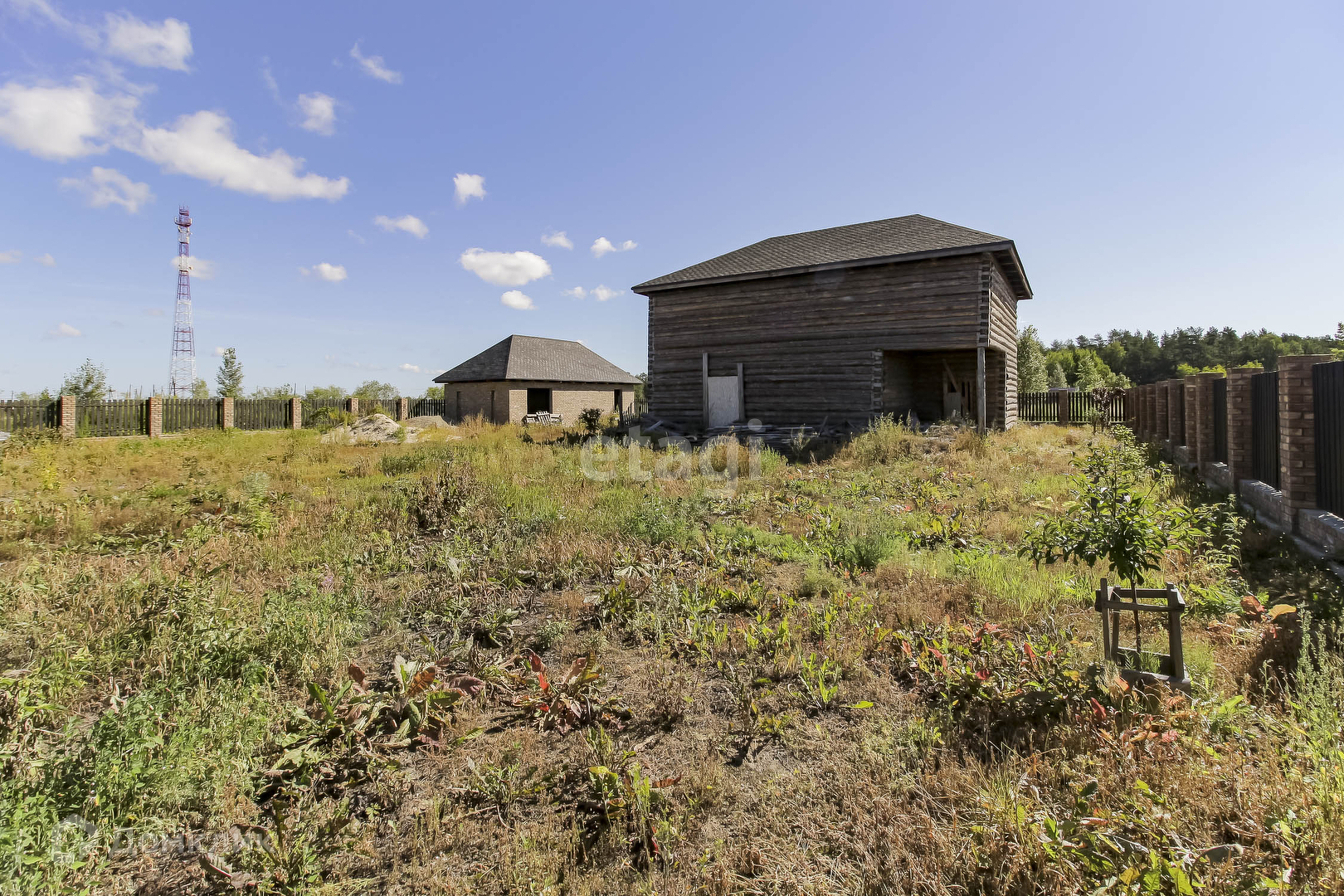 На участке расположен сруб дома,S= 12*10 м2 (по основанию). Дом из зимнего бревна на 2 этажа, с балконом, заведен под крышу(мягкая черепица). В доме есть большой подвал. Дизайн проект дома в подарок. Газ проходит по улице и центральный водопровод подведен. Есть септик(расположен рядом с домом) с заведением в дом. Участок обнесен деревянным забором, на фундаменте, выведена проводка под внутренний свет по всему участку.