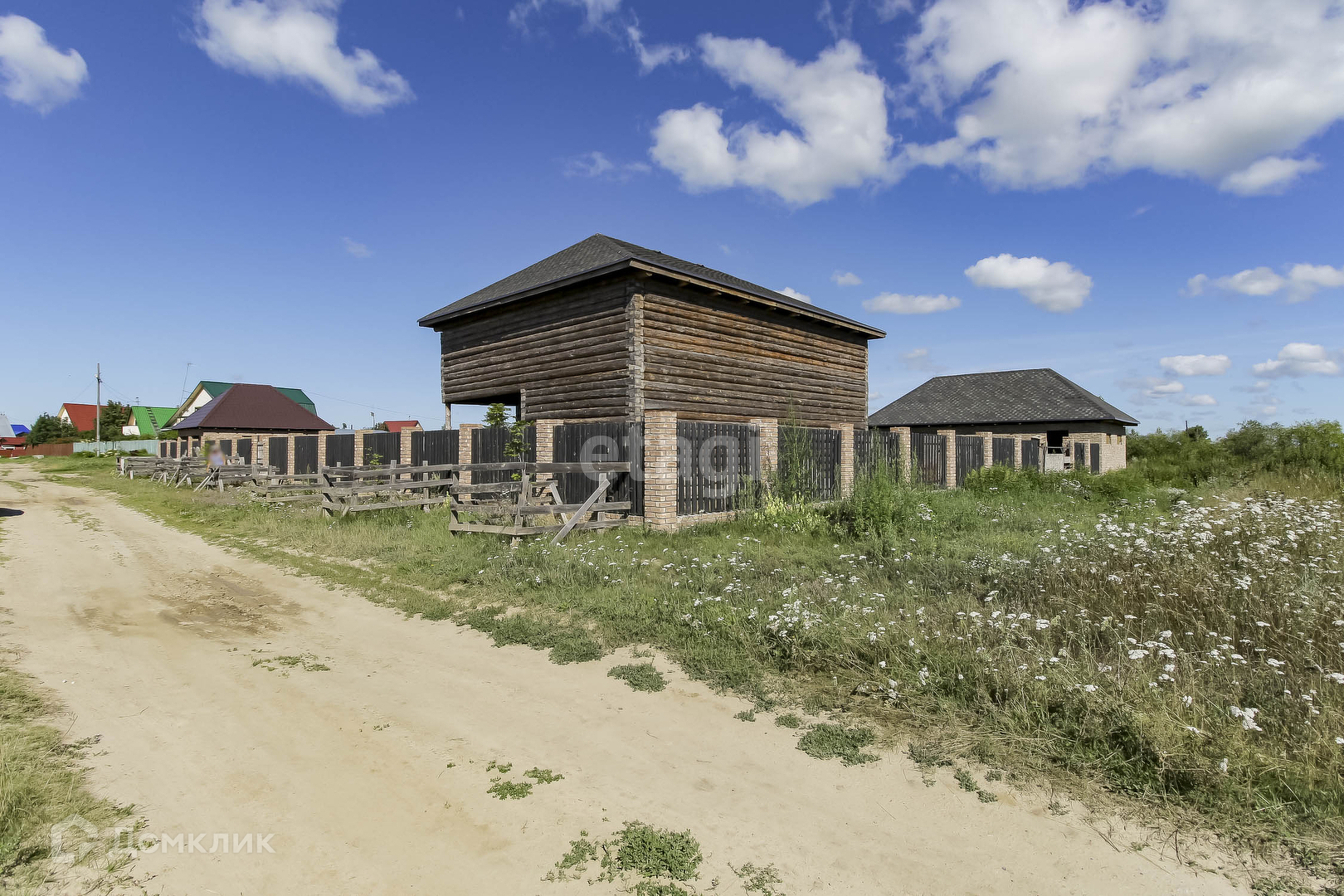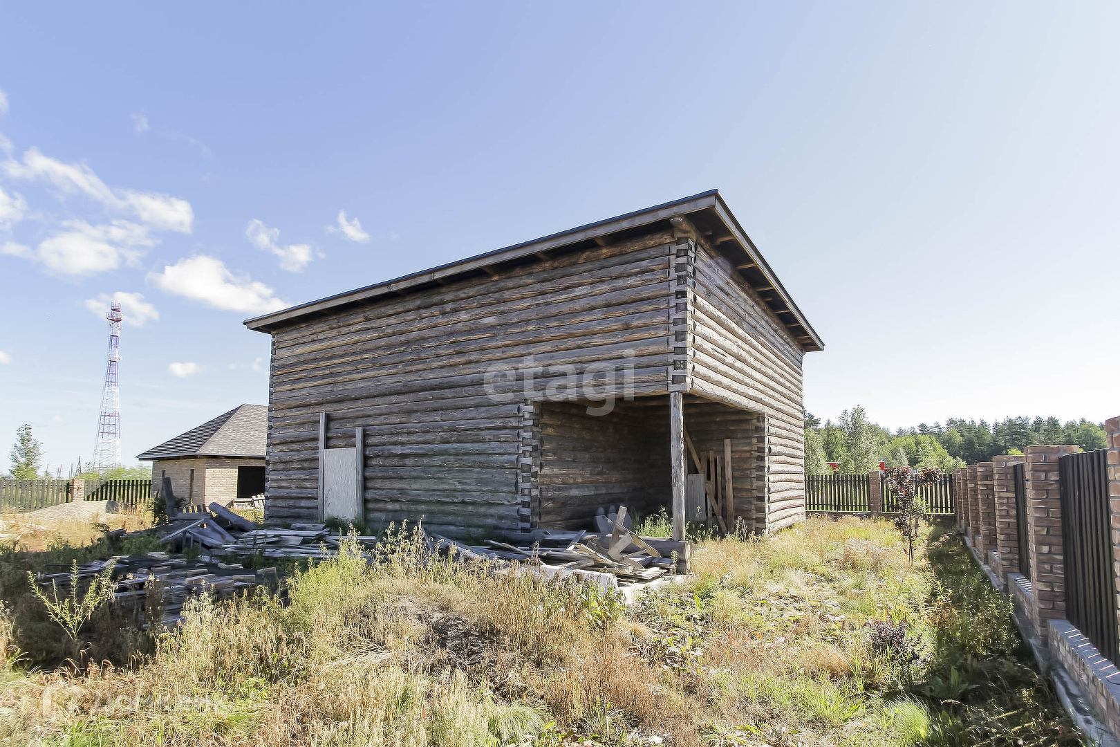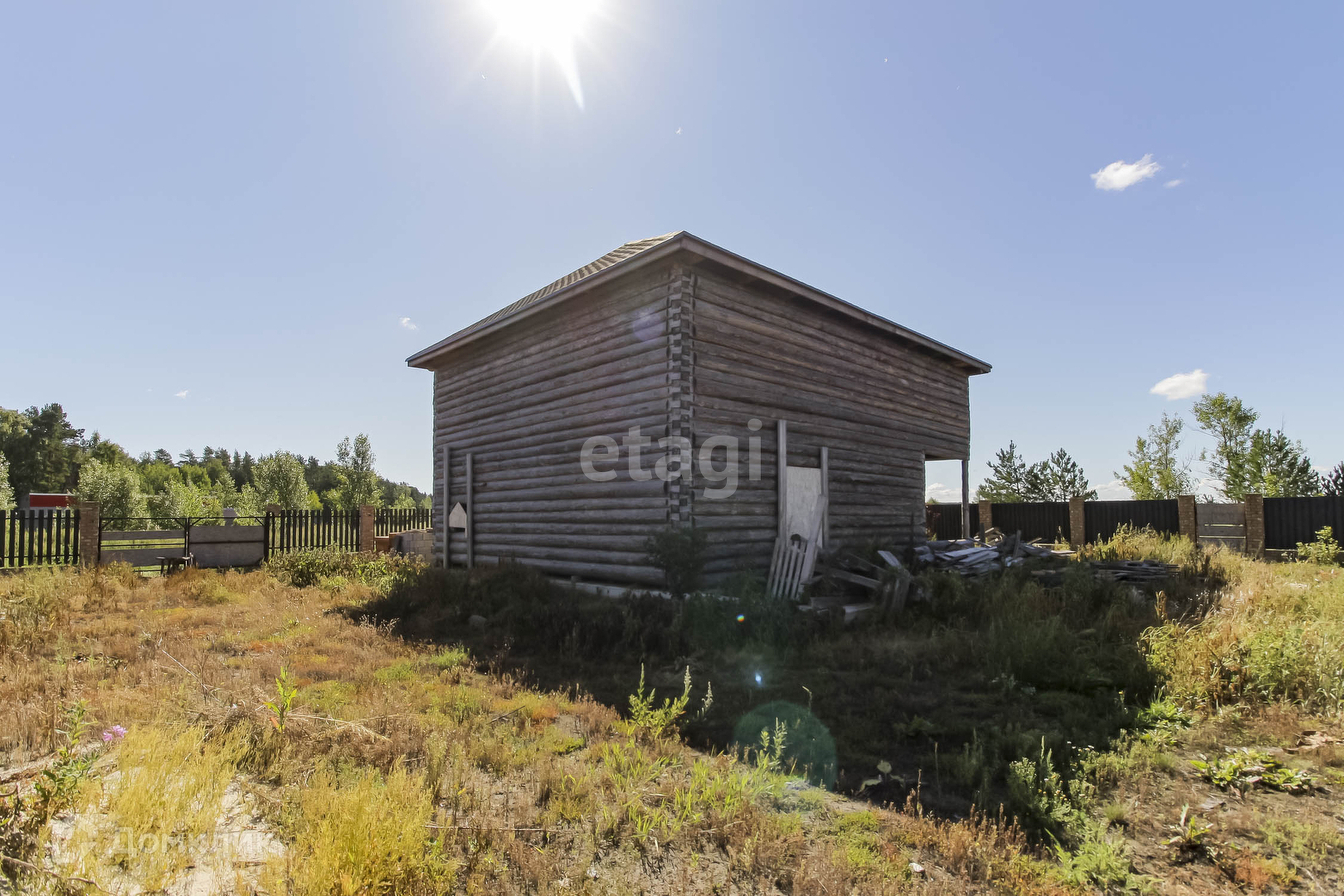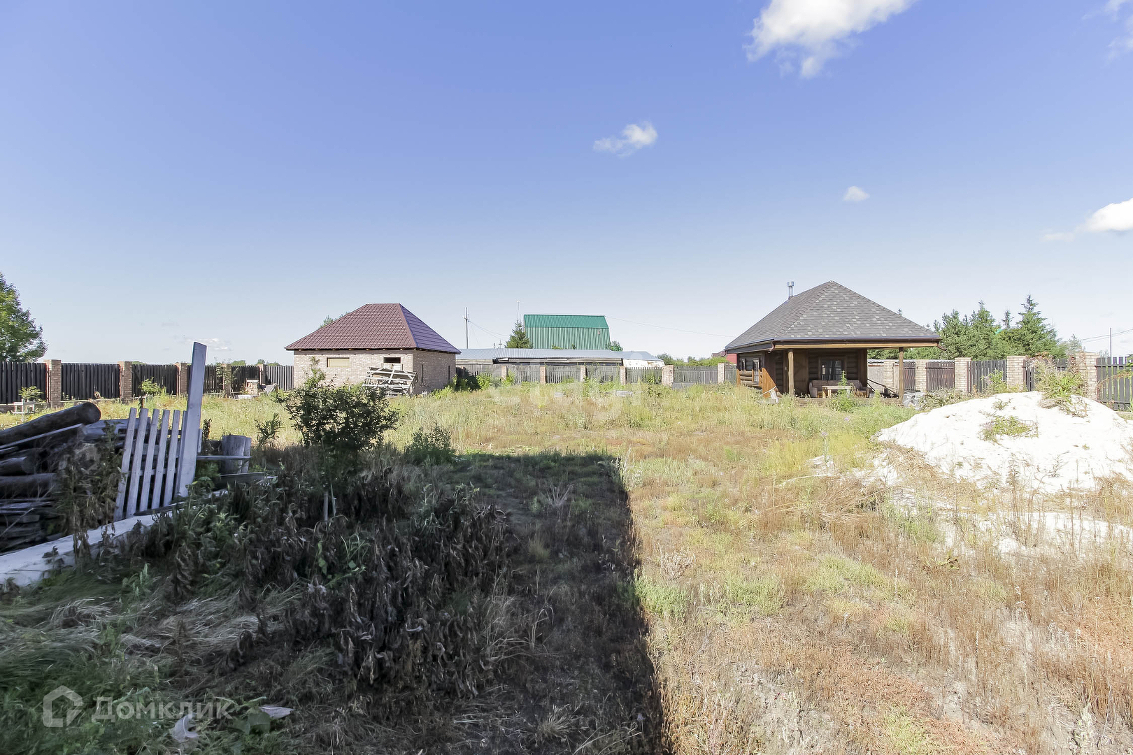 На участке расположен сруб дома,S= 12*10 м2 (по основанию). Дом из зимнего бревна на 2 этажа, с балконом, заведен под крышу(мягкая черепица). В доме есть большой подвал. Дизайн проект дома в подарок. Газ проходит по улице и центральный водопровод подведен. Есть септик(расположен рядом с домом) с заведением в дом. Участок обнесен деревянным забором, на фундаменте, выведена проводка под внутренний свет по всему участку.