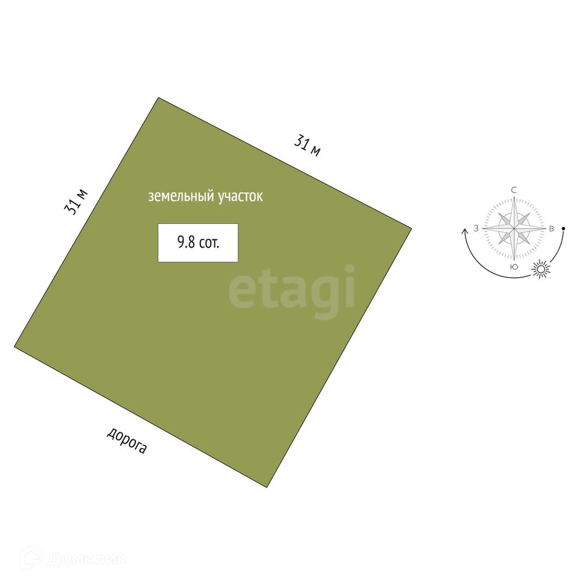 Площадь участка 9.8 сот.