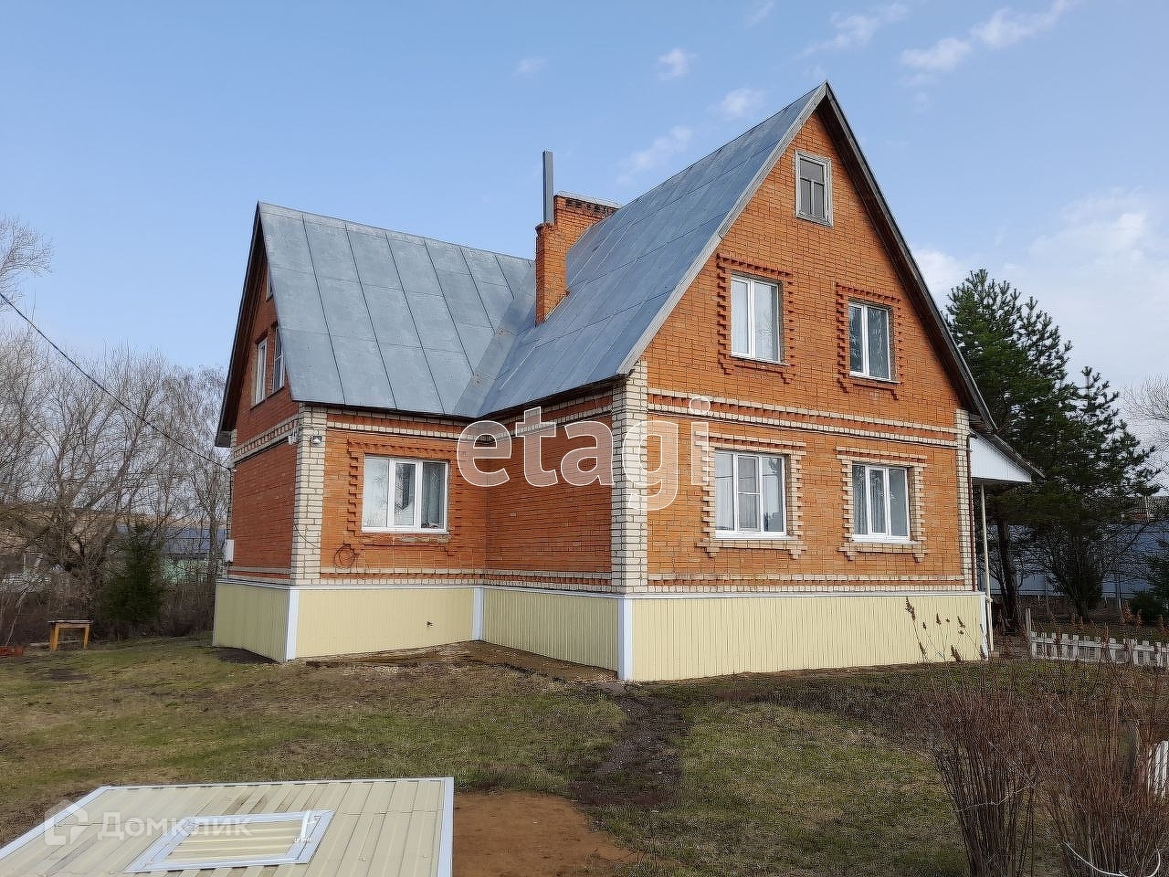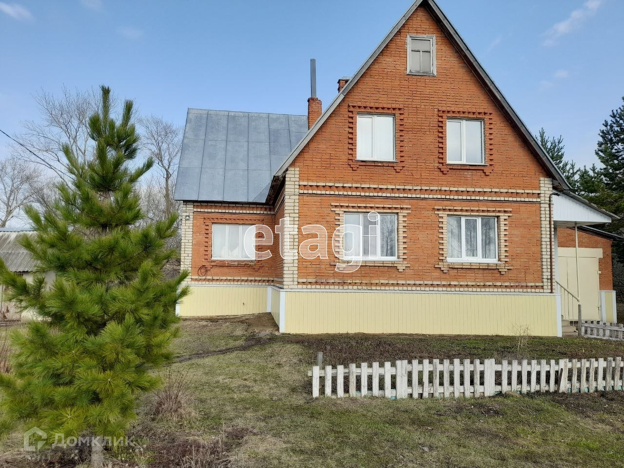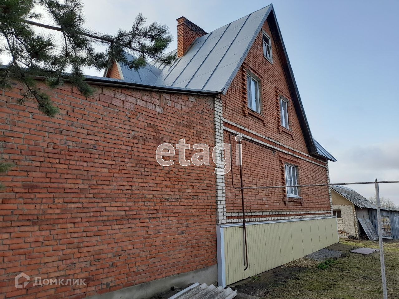 Есть большой кирпичный гараж, пристроенный к дому.