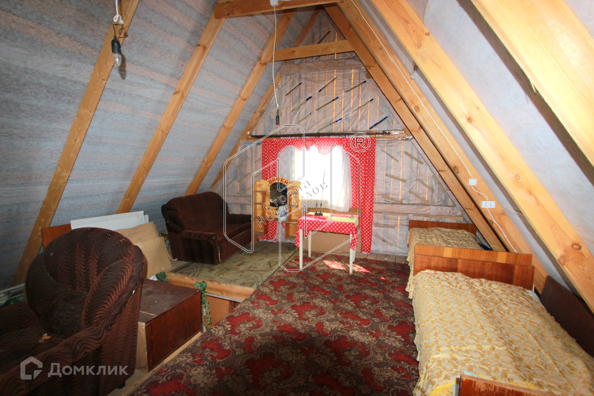 Общая площадь дома - 50 кв. м. На 1-ом этаже расположены кухня-гостиная, баня с предбанником, кладовка; на 2-ом этаже - спальня. В доме выполнен косметический ремонт, установлены пластиковые окна, заведены вода, электричество.