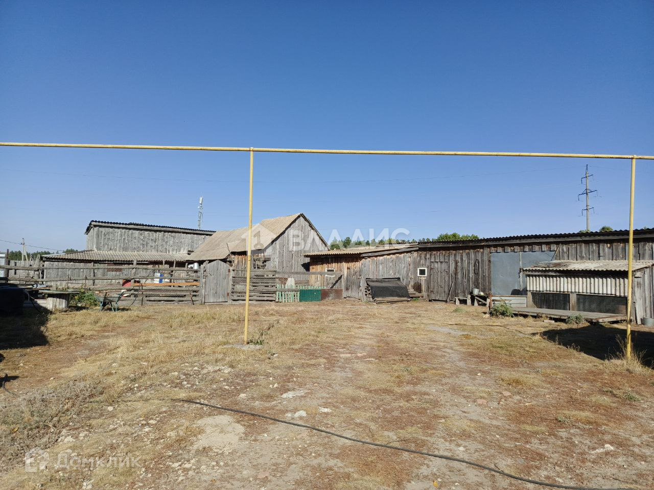 Ровный. На участке все коммуникации - свет, газ, вода, выполнено межевание. Двор ухоженный, много построек, баня  на березовых дровах, теплица,  открытый навес под машину, 2 гаража, зернохранилище, курятник, загон для животных, погреб.