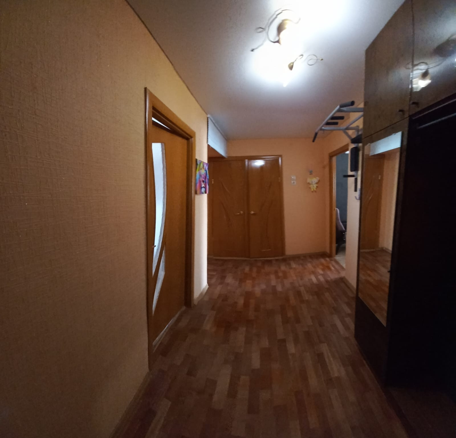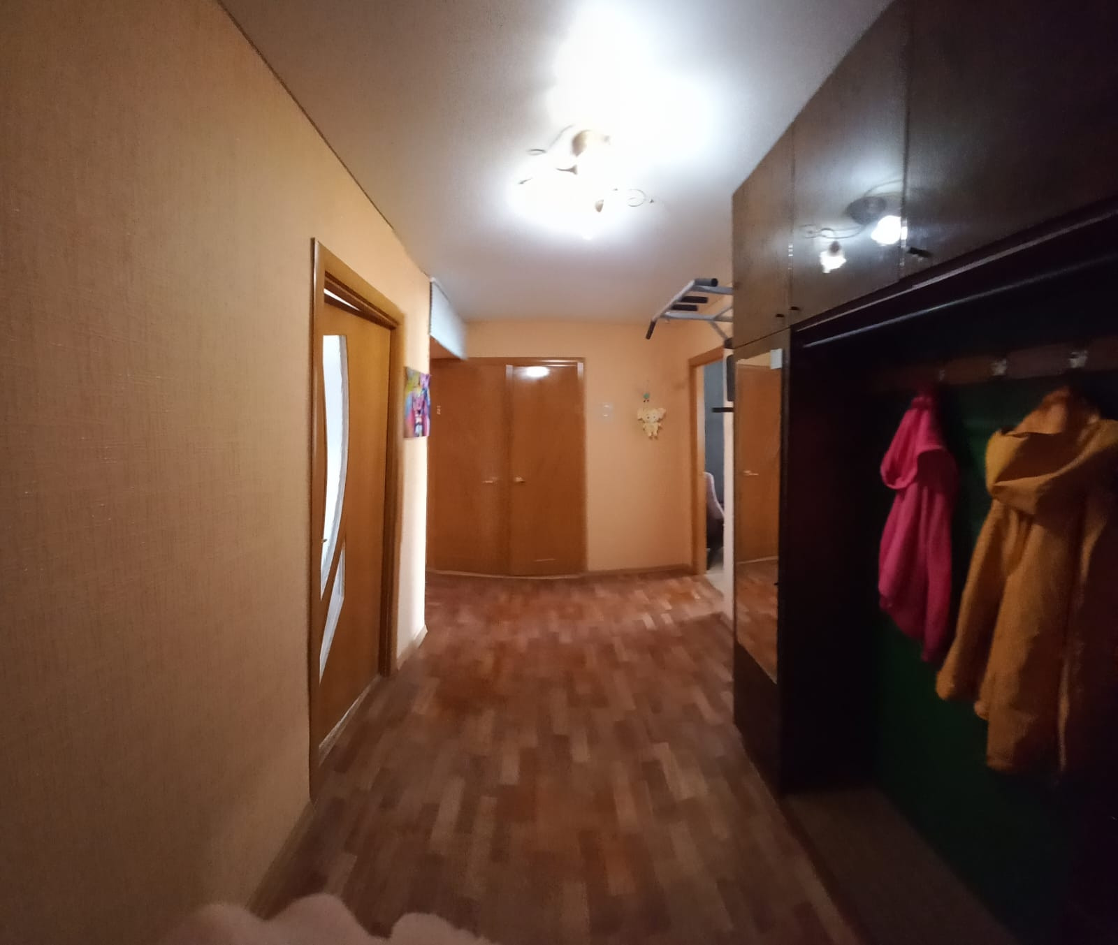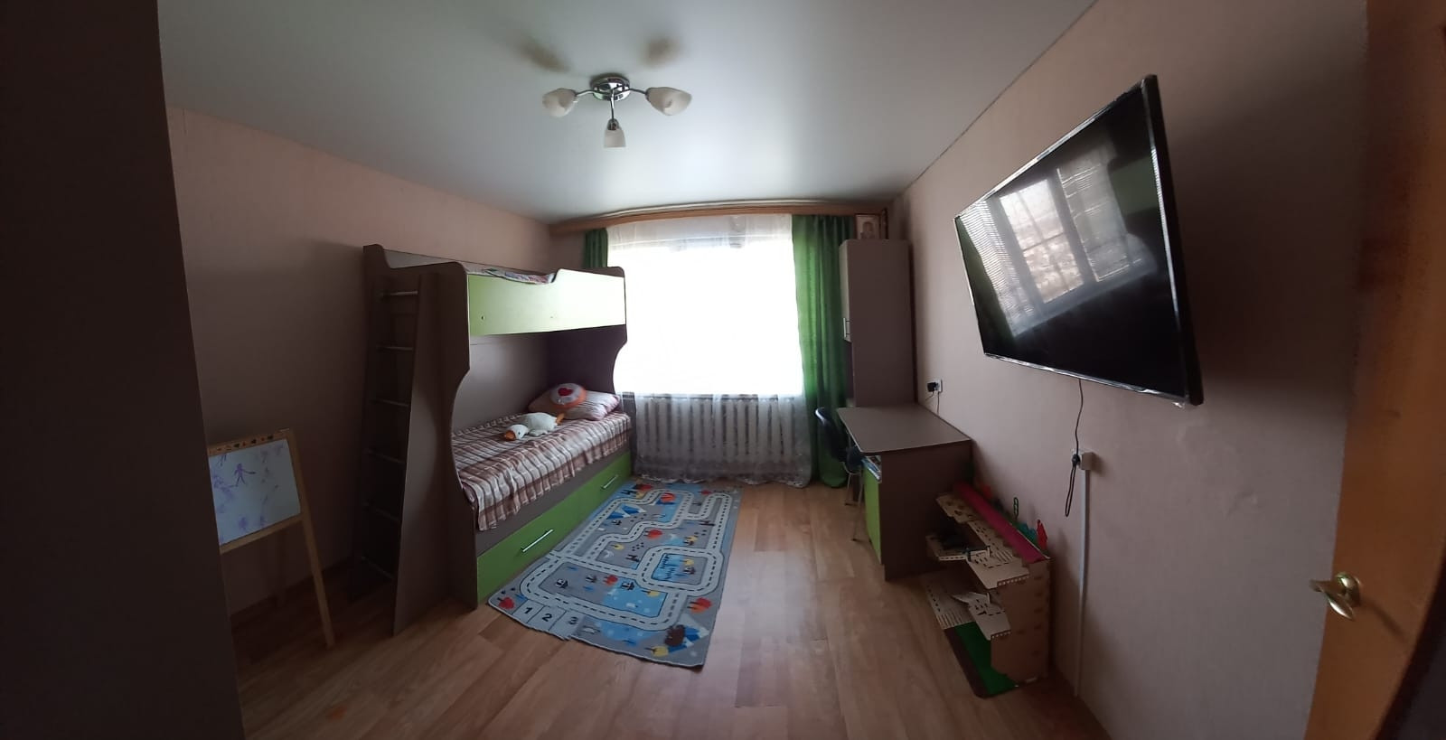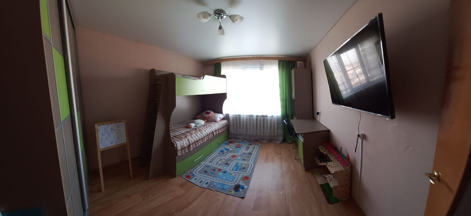 продам двухкомнатную квартиру. санузел раздельный. во всех комнатах натяжные потолки, пластиковые окна. квартира распашонка. в квартире остаётся : полностью детская комната,кухонный гарнитур, шкаф в коридоре,на балконе шкафы.в шаговой доступности школа,детский сад, почта России,Сбербанк, магазин. до города 10 минут.  остались вопросы -звоните