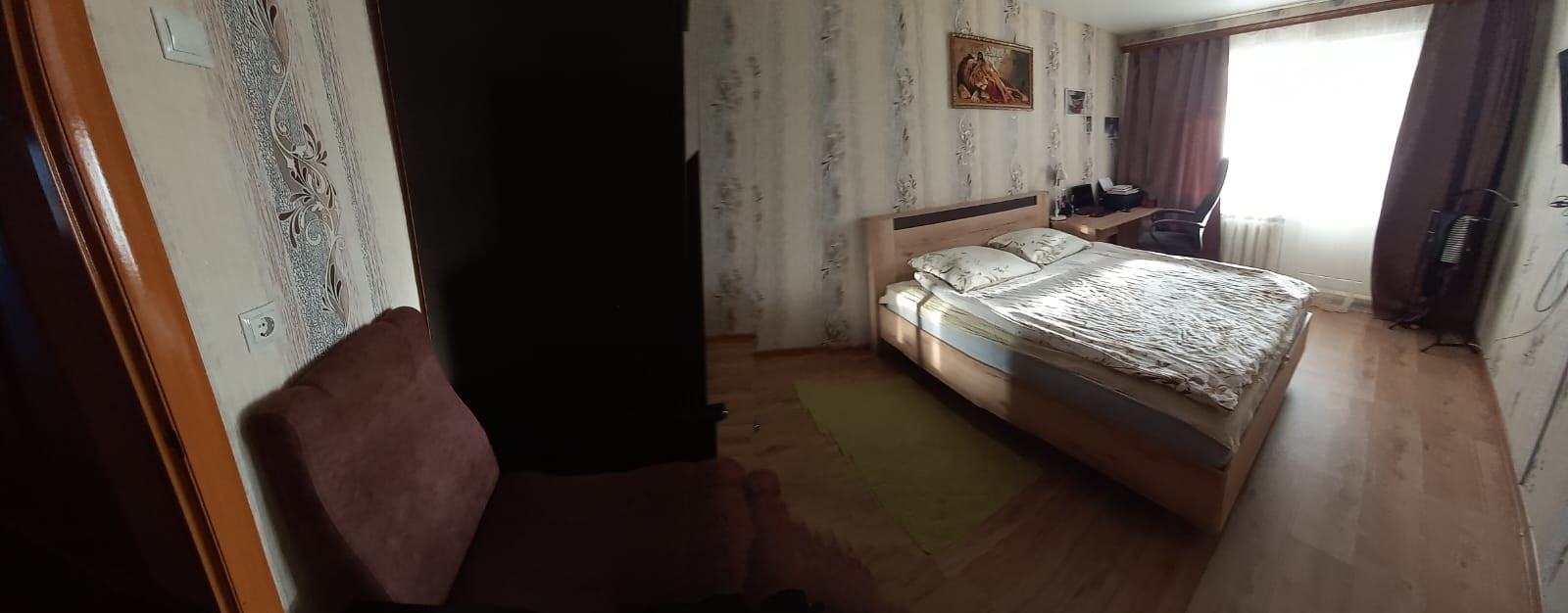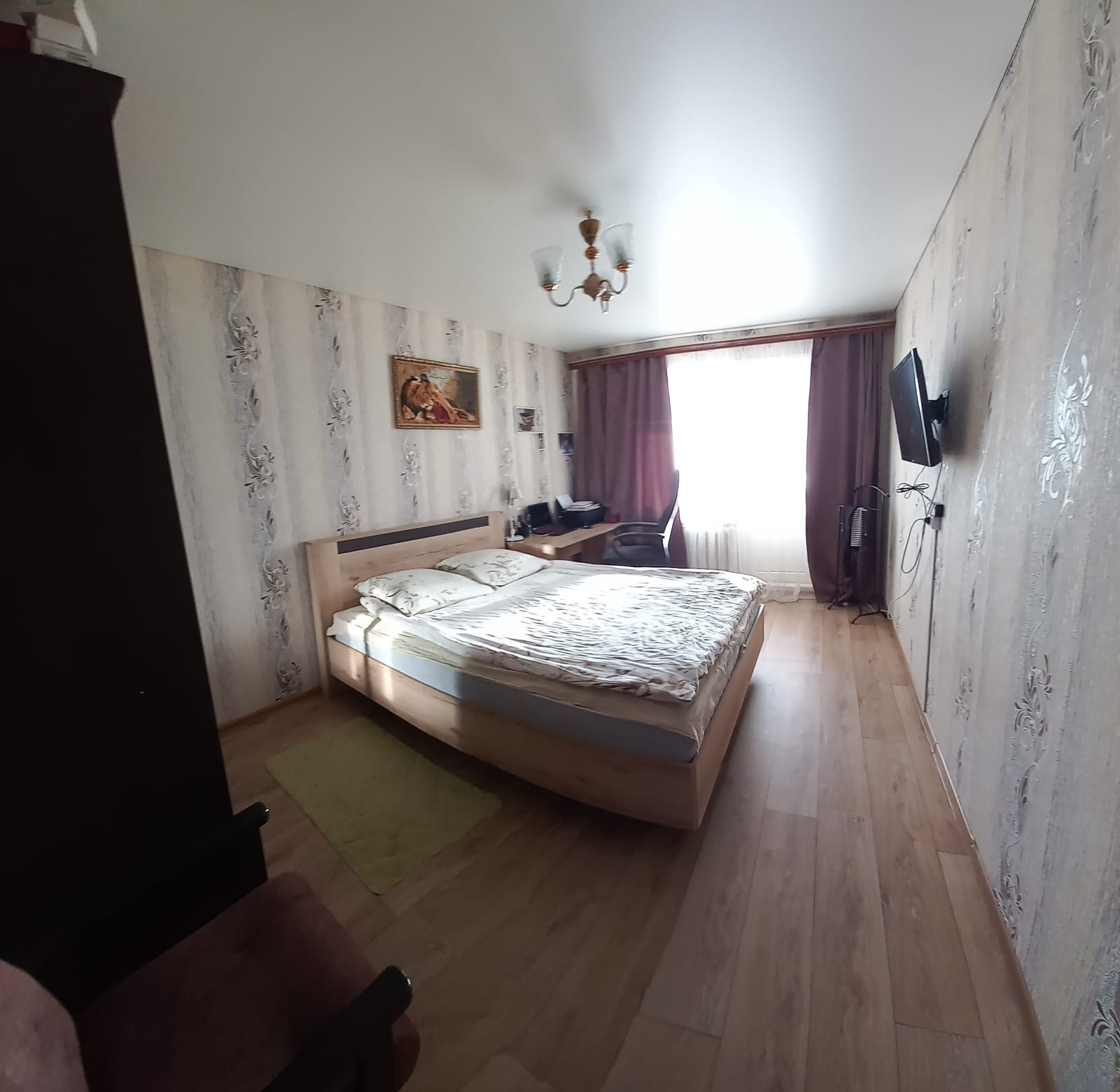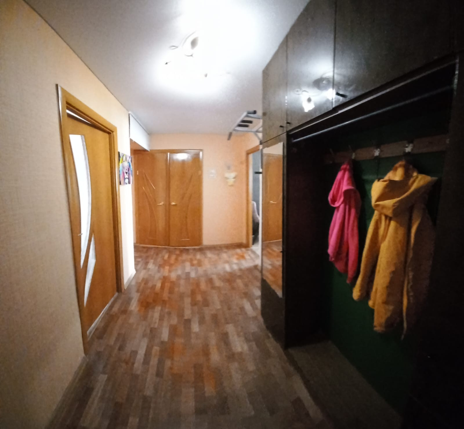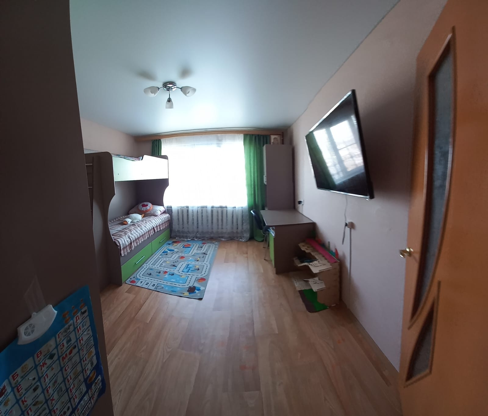продам двухкомнатную квартиру. санузел раздельный. во всех комнатах натяжные потолки, пластиковые окна. квартира распашонка. в квартире остаётся : полностью детская комната,кухонный гарнитур, шкаф в коридоре,на балконе шкафы.в шаговой доступности школа,детский сад, почта России,Сбербанк, магазин. до города 10 минут.  остались вопросы -звоните