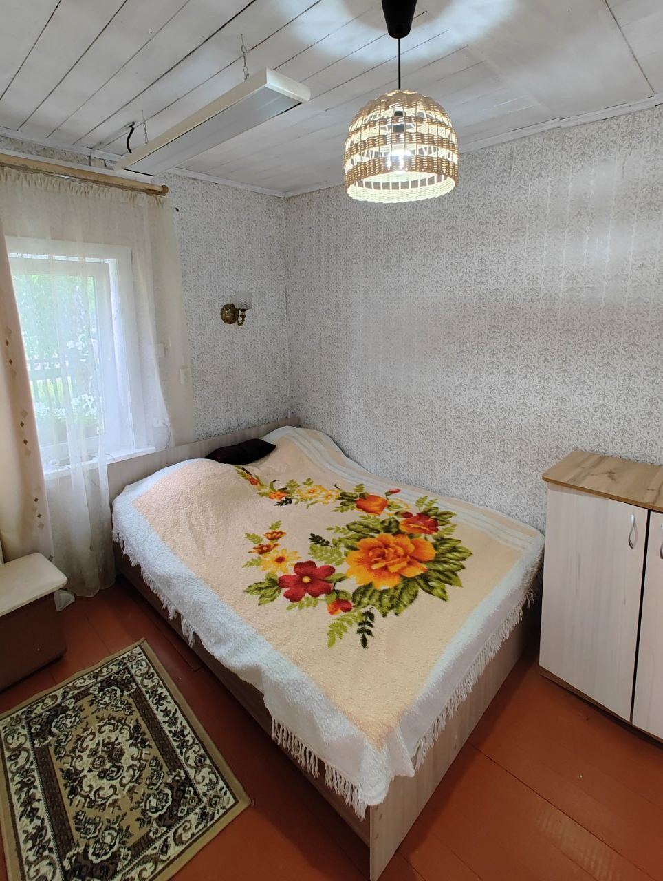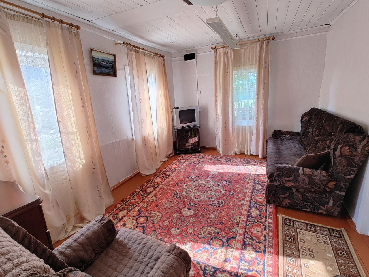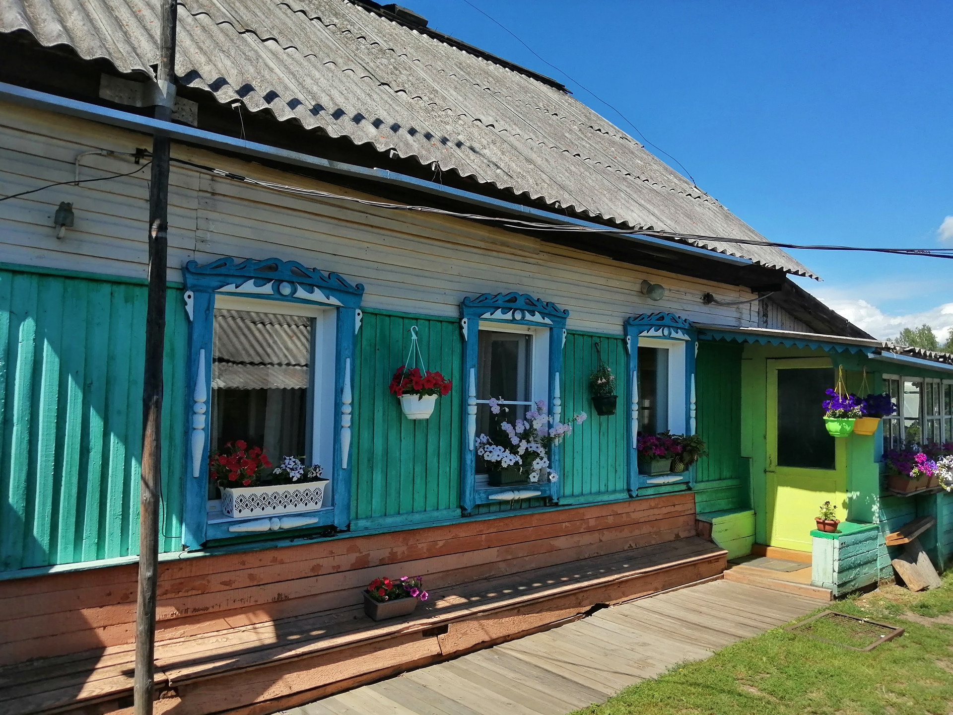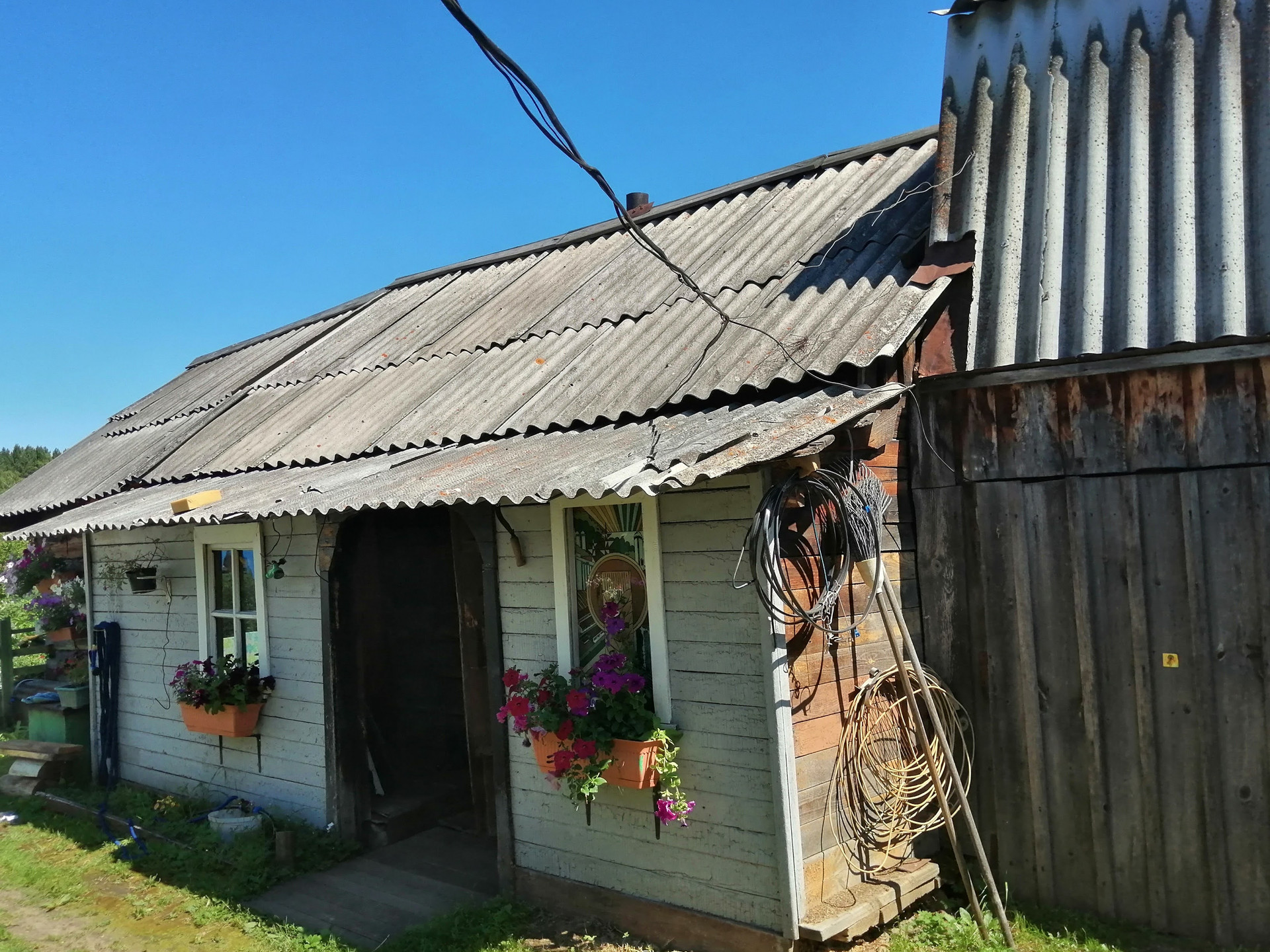 Дом бревенчатый, находится на центральной улице (асфальтовое  покрытие), недалеко река.  Две комнаты,  небольшая  кухня. Стеклопакеты. В подполье забита скважина. Канализация. В доме имеется  туалет, душ. На кухне установлена раковина с подводкой  холодной воды, слив  в канализацию. Печное  отопление. В прошлом году  была заменена  вся  электропроводка в доме. Есть небольшая  баня, две теплицы. Огород разработан, много плодовых насаждений (смородина, малина, слива,  ирга).